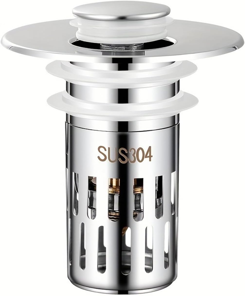 - Effective Hair and Debris Filtering: The Sink Stopper Bathroom Drain with an Anti-Blocking Basket Strainer Inside, Get Rid of The Annoying Tools for Cleaning Clogged Pipes! The Bathroom Sink Strainer Can Effectively Catch The Hair and at The Same Time Allow It To Drain Quickly. Enjoy a cleaner, clog-free sink without the need for harsh chemicals or complicated tools.