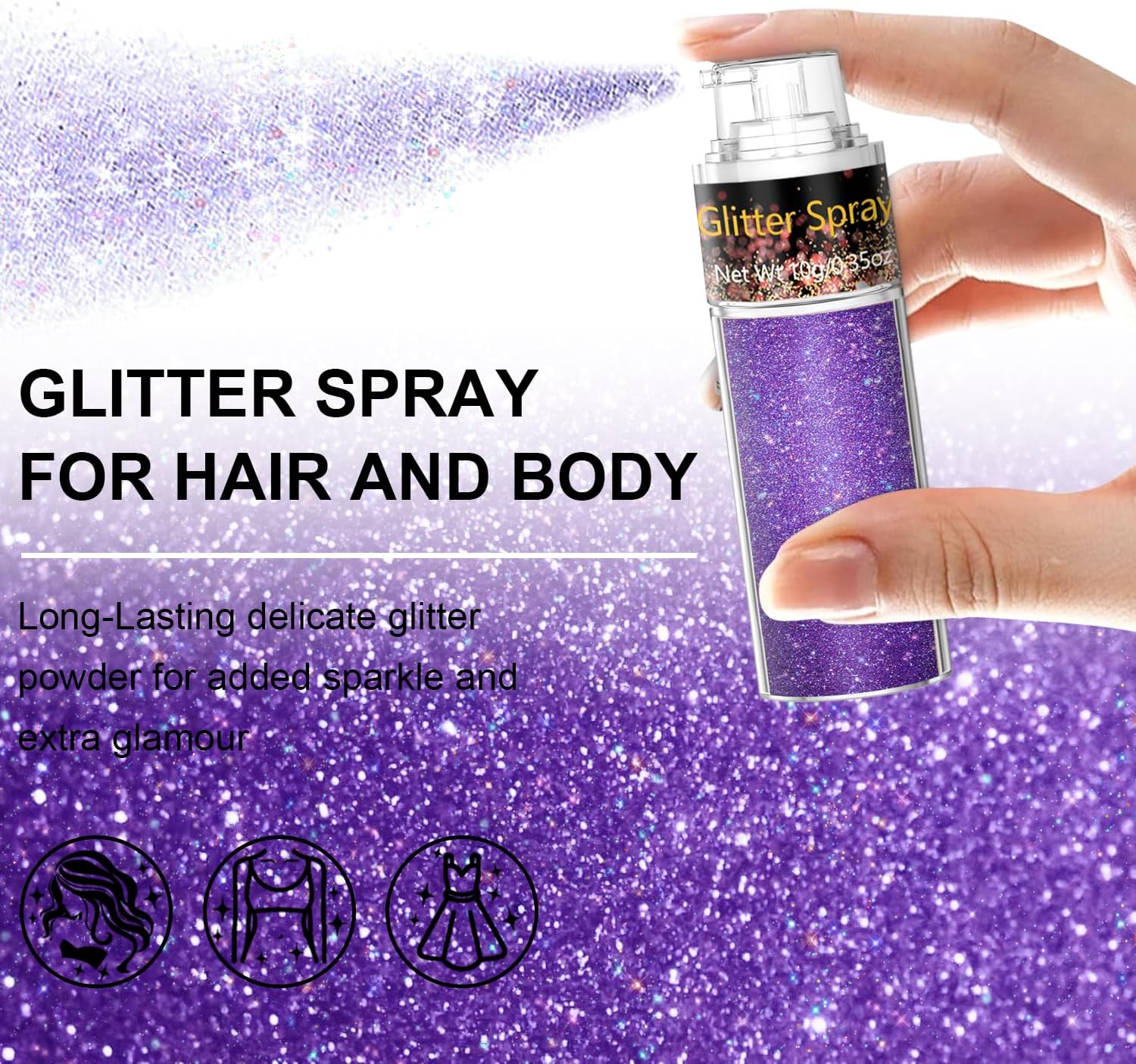 Hair and Body Glitter Spray, 1PC Purple Glitter Hairspray Dry Powder Makeup for Clothes, Festival Rave Prom Loose Sparkle Powder,Holographic Ultra Fine Resin Glitters for Crafts,10g (Purple)