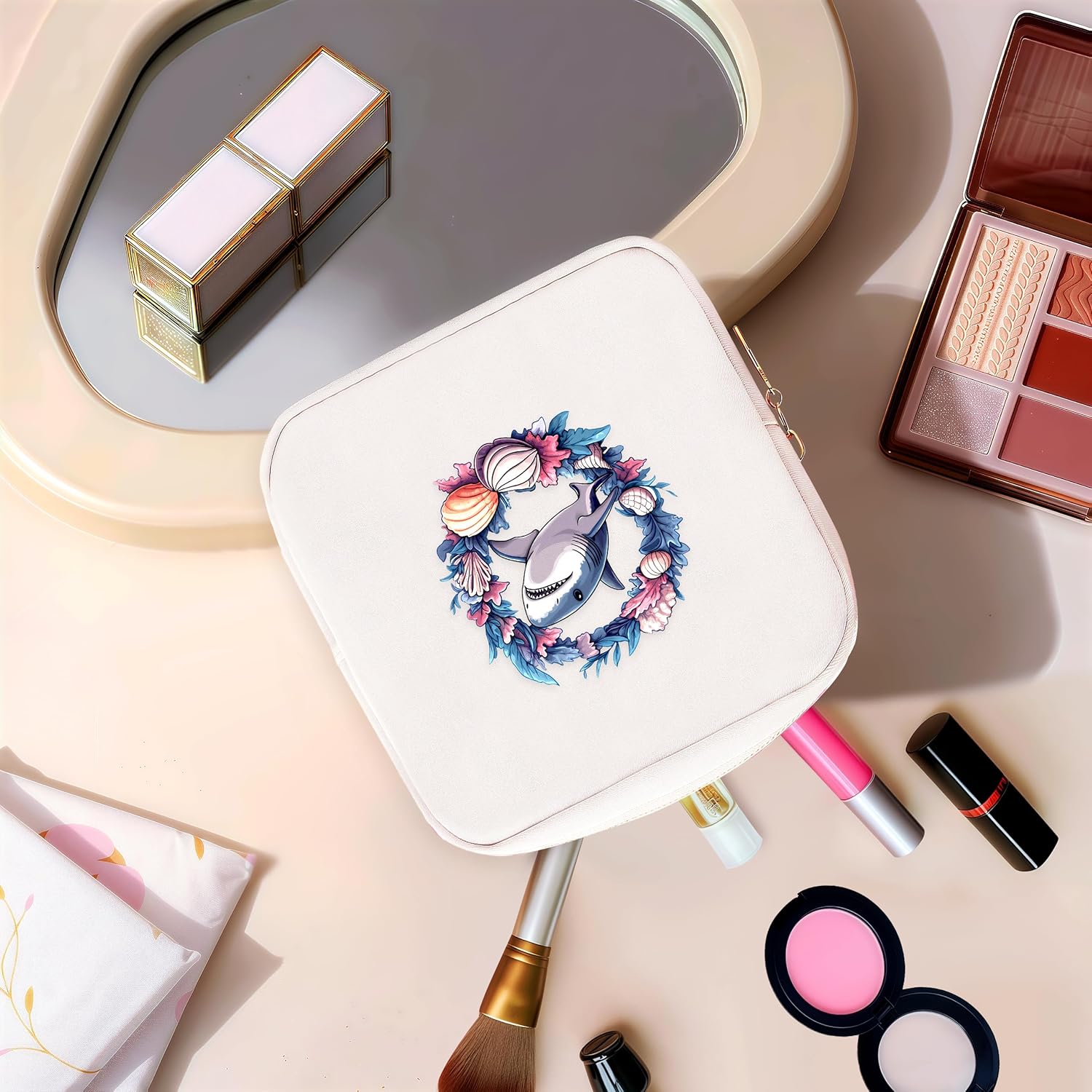 Shark Mini Makeup Bag, Shark Gift For Women Girls, Cute Portable Zipper Pouch Cosmetic Bag For Teen Girls Kids, Small Storage Bag For Sanitary Pad, Period napkin bag!