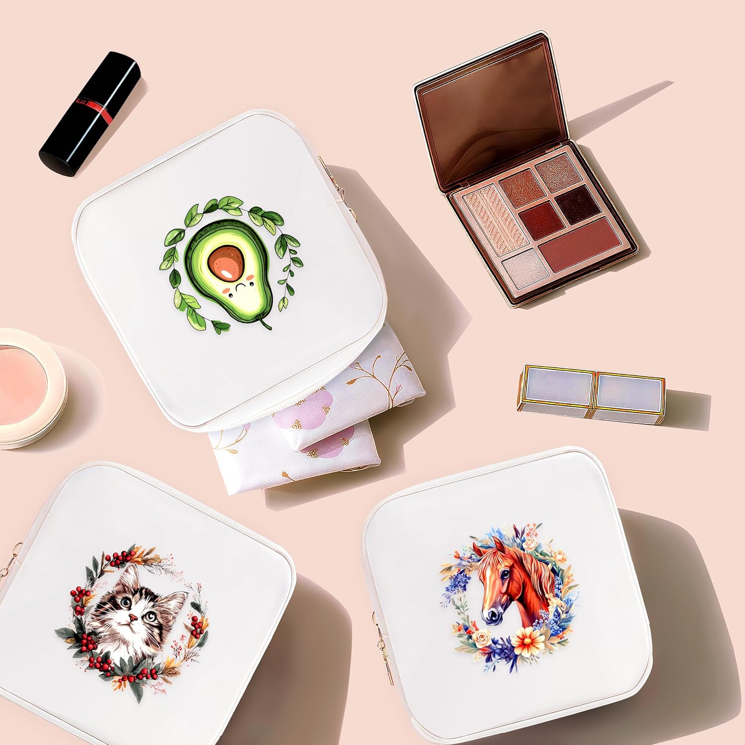 - The cute small makeup bag also can be used as makeup bag for coin purse or sanitary napkin storage bag; this makeup bag is very suitable for daily life; when you business trip, the makeup bag can play an unexpected effect