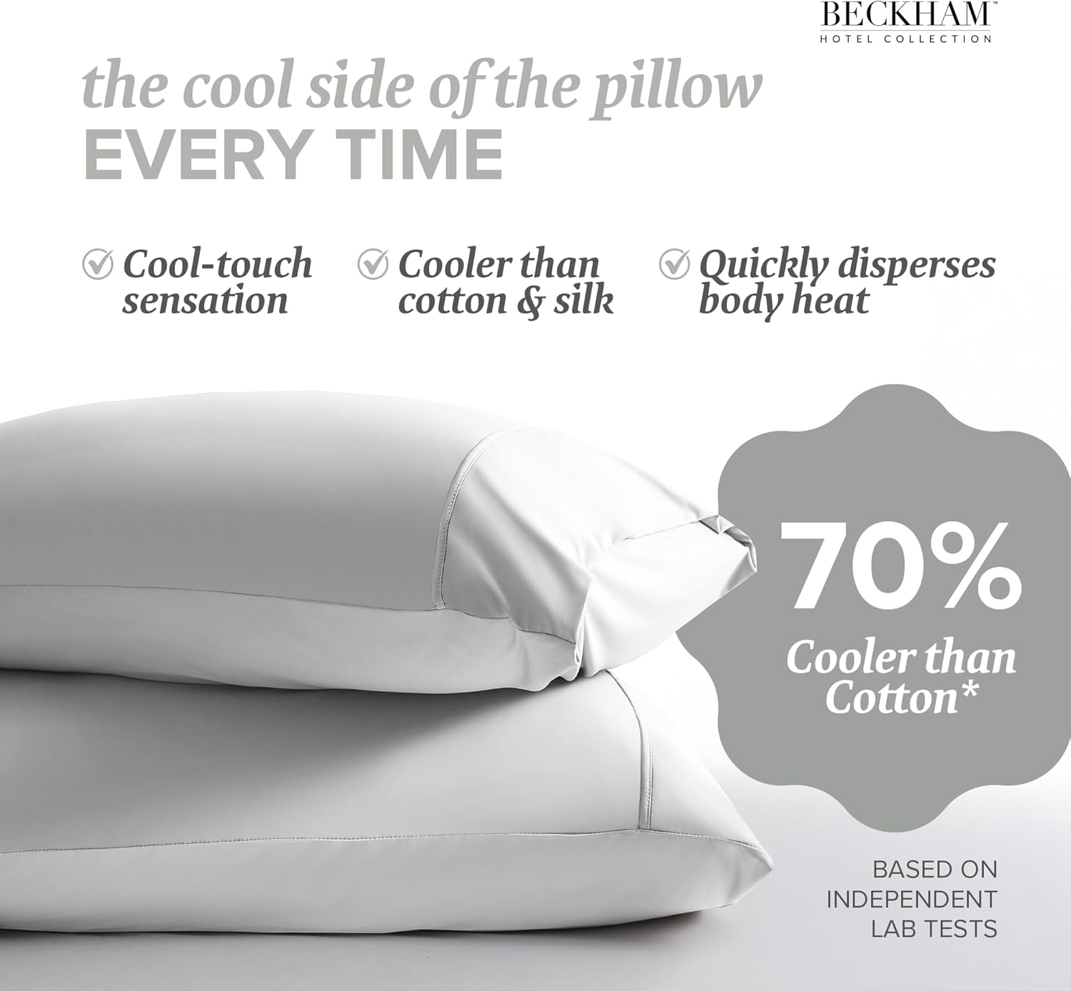 Beckham Hotel Collection Cooling Pillowcases for Hot Sleepers, Standard/Queen Size Set of 2, Cool Bedding, Envelop Closure, Silky Soft, Breathable, Moisture-Wicking, White
