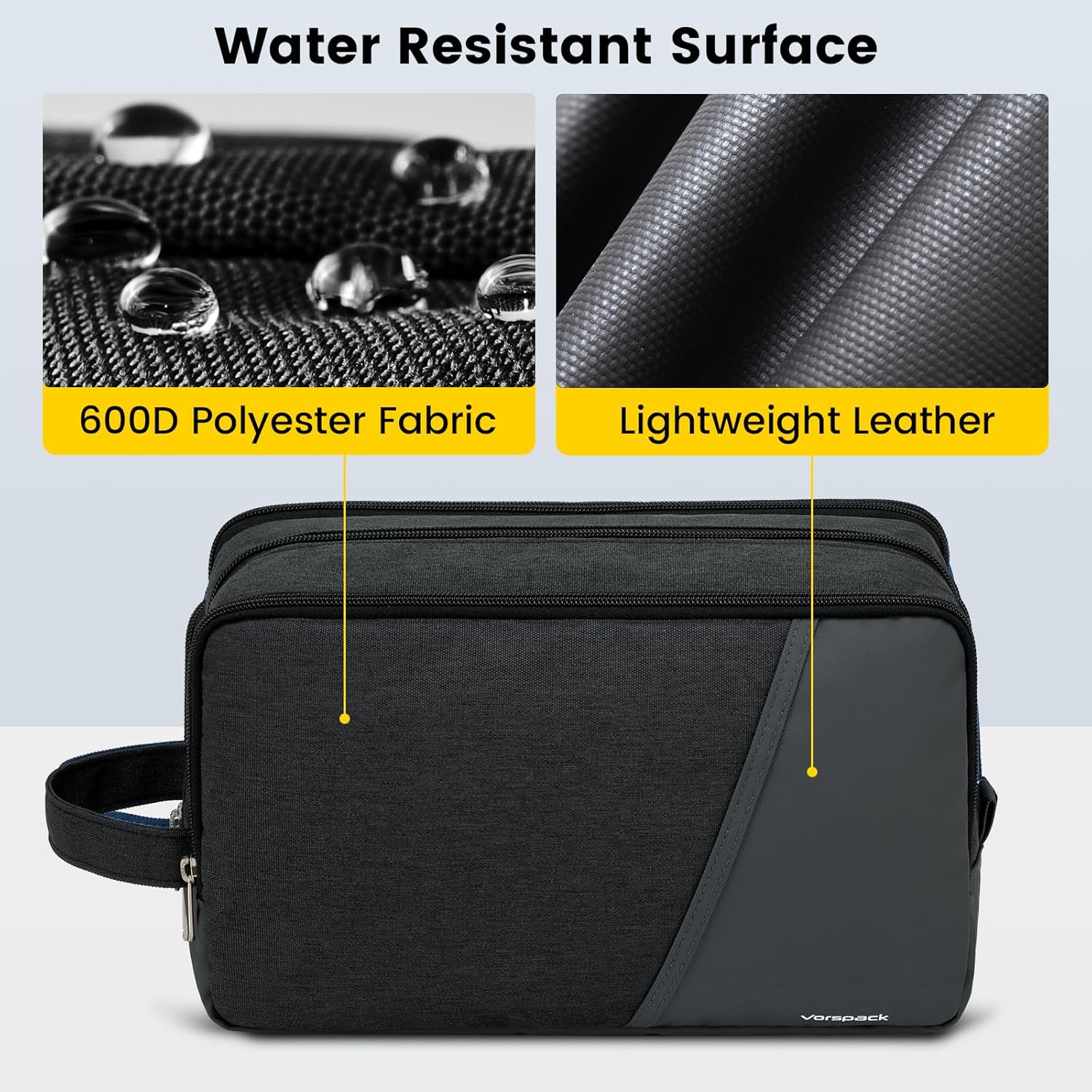 Vorspack Large Travel Toiletry Bag - Water Resistant Toiletry Bag for Men for Bathroom Toiletries Accessories Gifts - Black