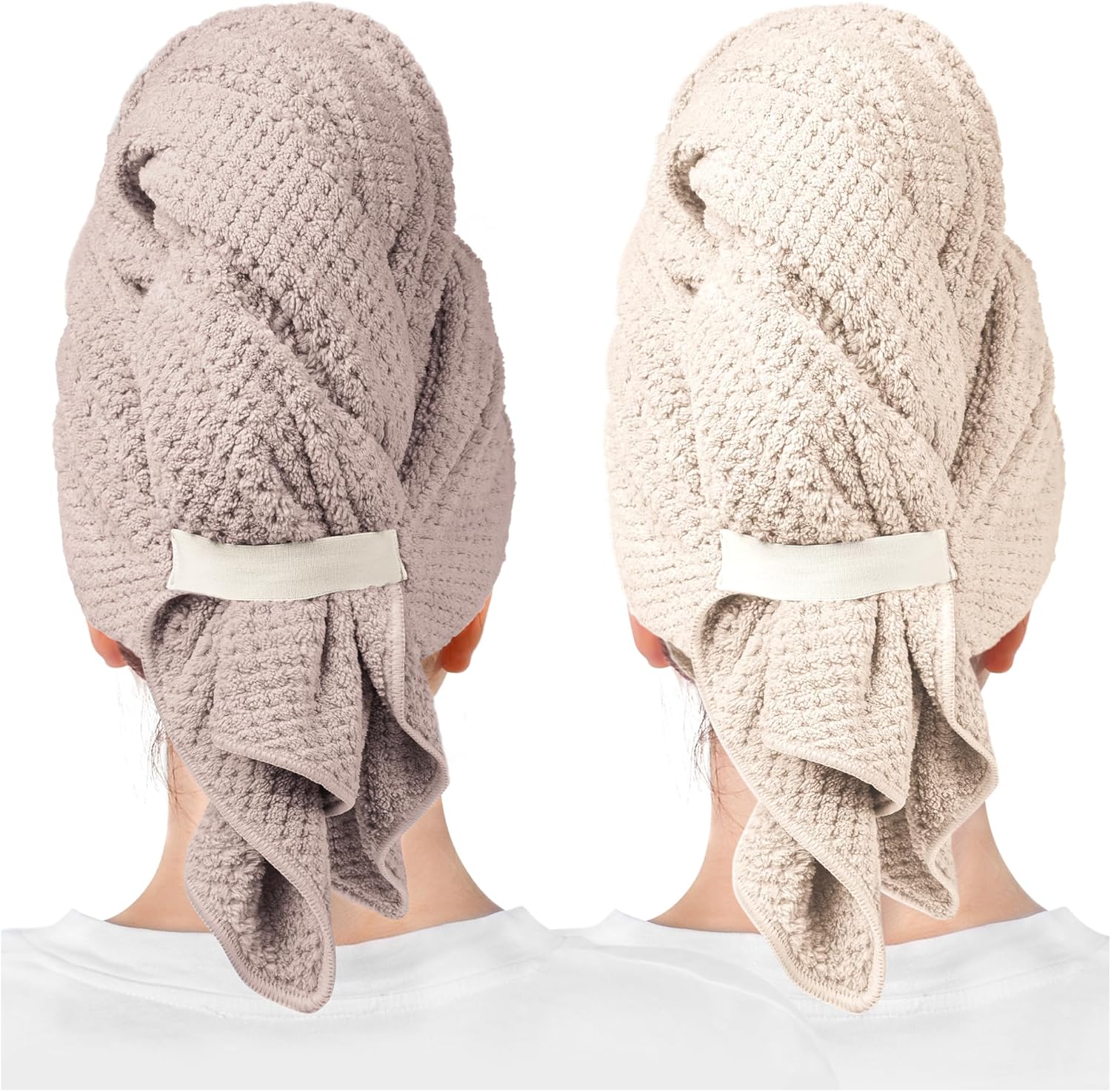 2 Packs Large Microfiber Hair Towels for Women, Super Absorbent & Quick Dry Hair Towel Wrap for Curly Hair Long & Short Hair- Anti-Frizz Hair Turbans for Wet Hair (Mauve & Clay)
