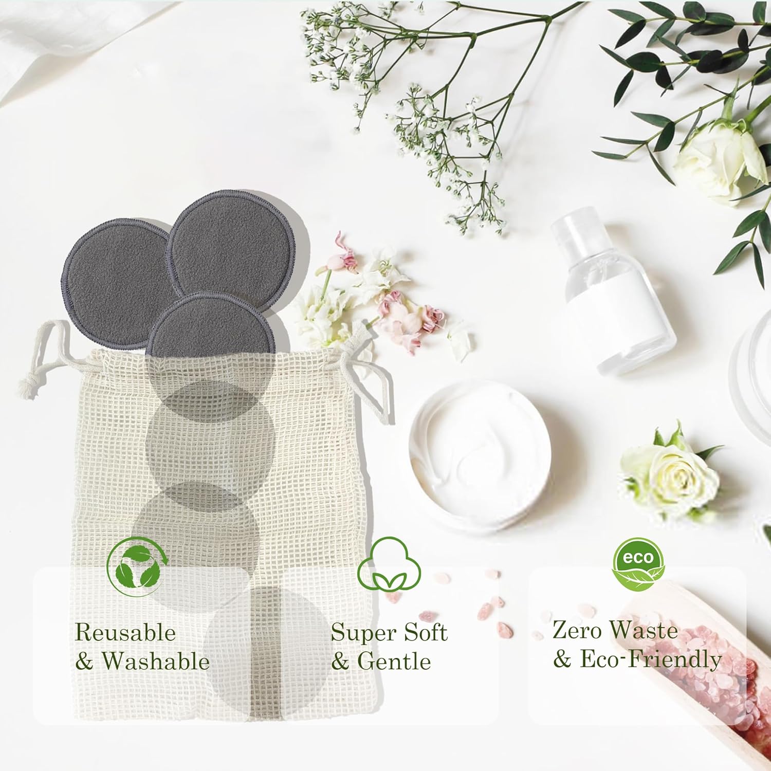 - SUSTAINABLE DAILY ESSENTIAL: Replace disposable cotton rounds with these washable makeup remover pads. Each set of reusable cotton pads for face can be washed 500+ times. Simply wash and reuse our bamboo charcoal cotton rounds to effortlessly reduce waste. With extended use, these reusable face pads minimize single-use consumption while promoting an eco-conscious lifestyle