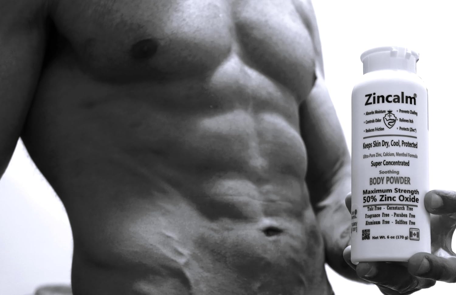 - Stop annoying skin irritation in warm, moist, and hard-to-reach areas of the body by applying Zincalm Anti-Chafing Body Powder to the inner thighs, groin, underarms, buttocks, feet, and other body parts.