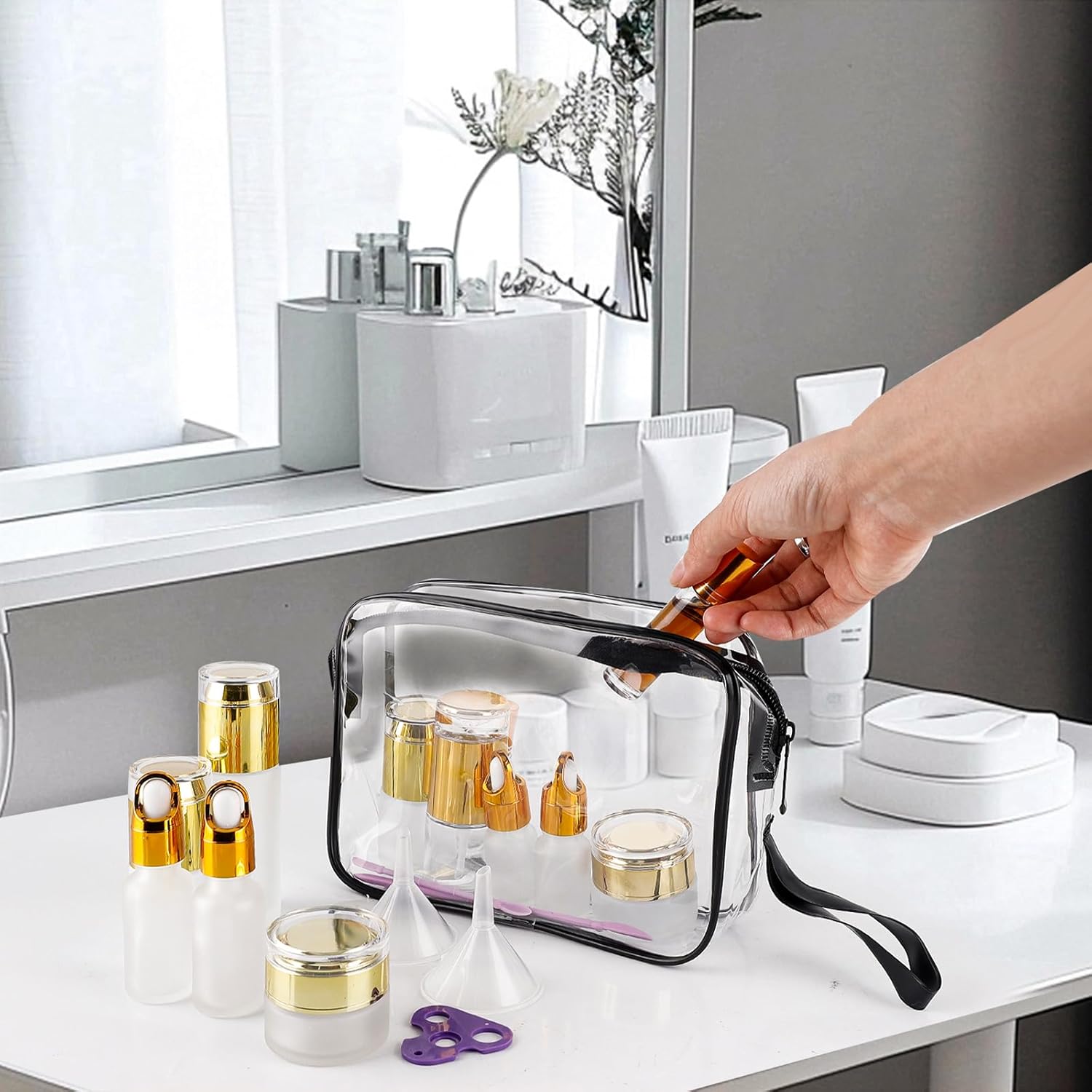 - TSA-APPROVED & SECURITY-FRIENDLY β Travel with confidence using these TSA-approved travel bottles, designed to meet airline regulations for carry-on liquids. The glass travel bottles for toiletries come in a TSA-approved toiletry bag, making airport security checks quick and hassle-free. With a simple and stylish design, Perfect to pack small travel containers for foundation, oil, serum, cream, makeup, & moisturizer.