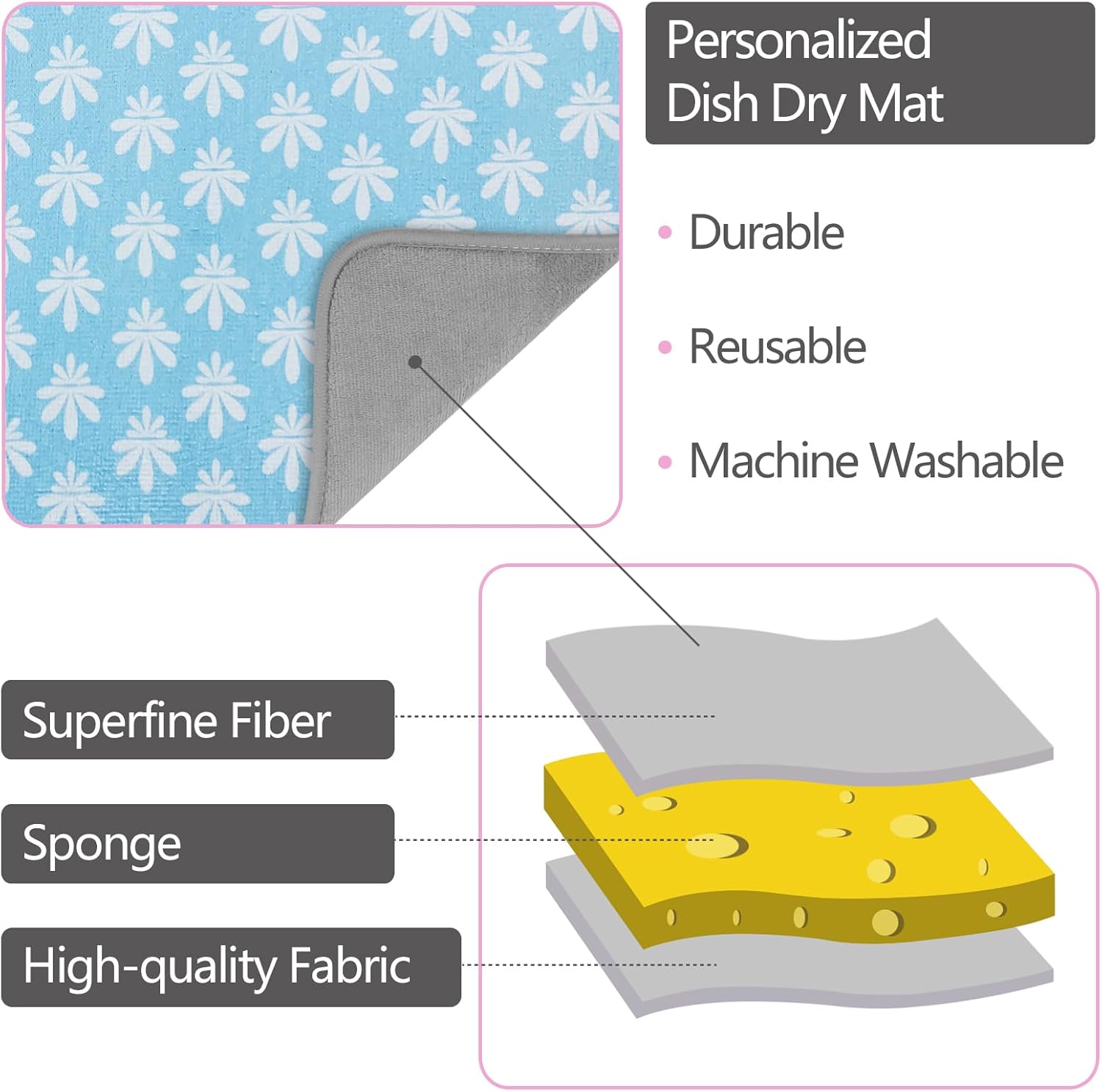 - ๐ CREATIVITY AND STRONG ABSORPTION: can't stand wet dishes and dry mats? Buy one of our dish mat drying kitchen mat. microfiber dish drying mat, the surface can quickly absorb water 2-4 times its own weight. Help your crockery and tableware dry faster and more hygienically, and keep the table completely dry