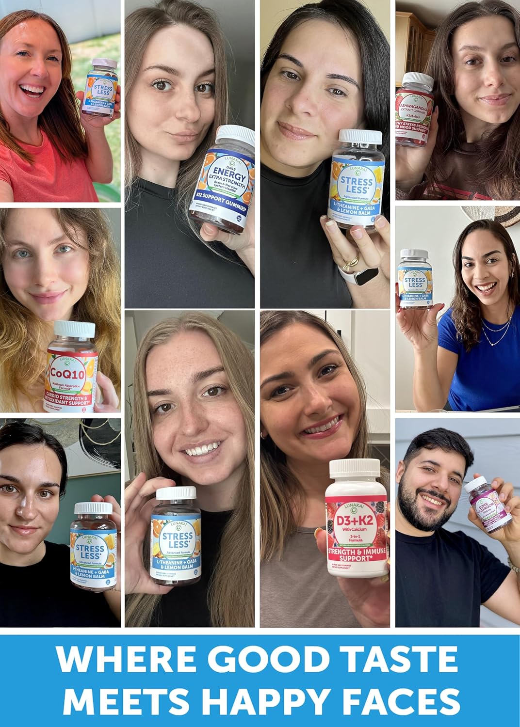 - Natural Stress Relief Gummies – Formulated with GABA, L-Theanine and Lemon Balm these delicious chewables help support natural stress relief and a calm mindset for adults and kids without causing drowsiness.
