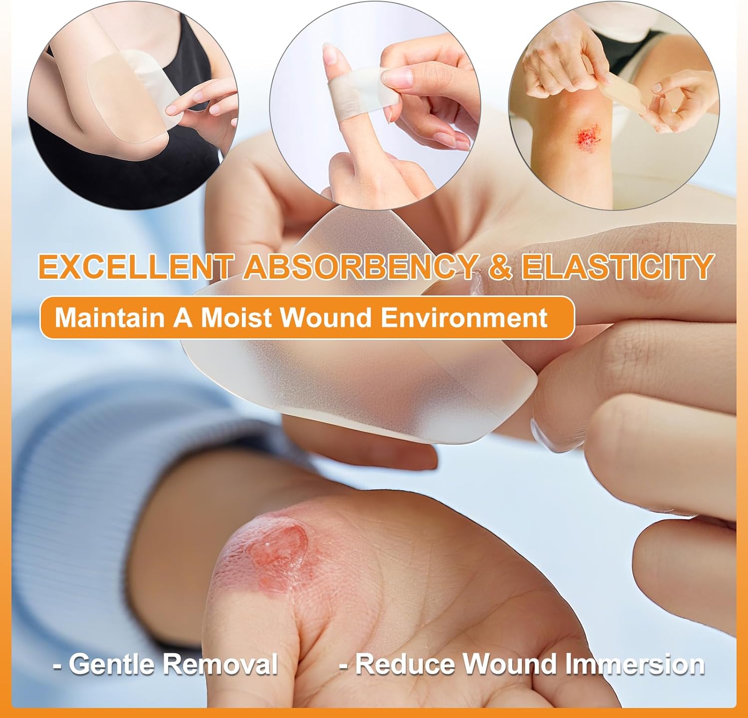 - Highly Absorbent & Self-Adhesive: Hydrocolloid bandages adopts self-adhesive design, which adheres to the skin gently, is soft and comfortable, and reduces the damage during replacement. By absorbing wound secretions and converting them into gel, the wound is kept moist and the wound is reduced from external contamination.