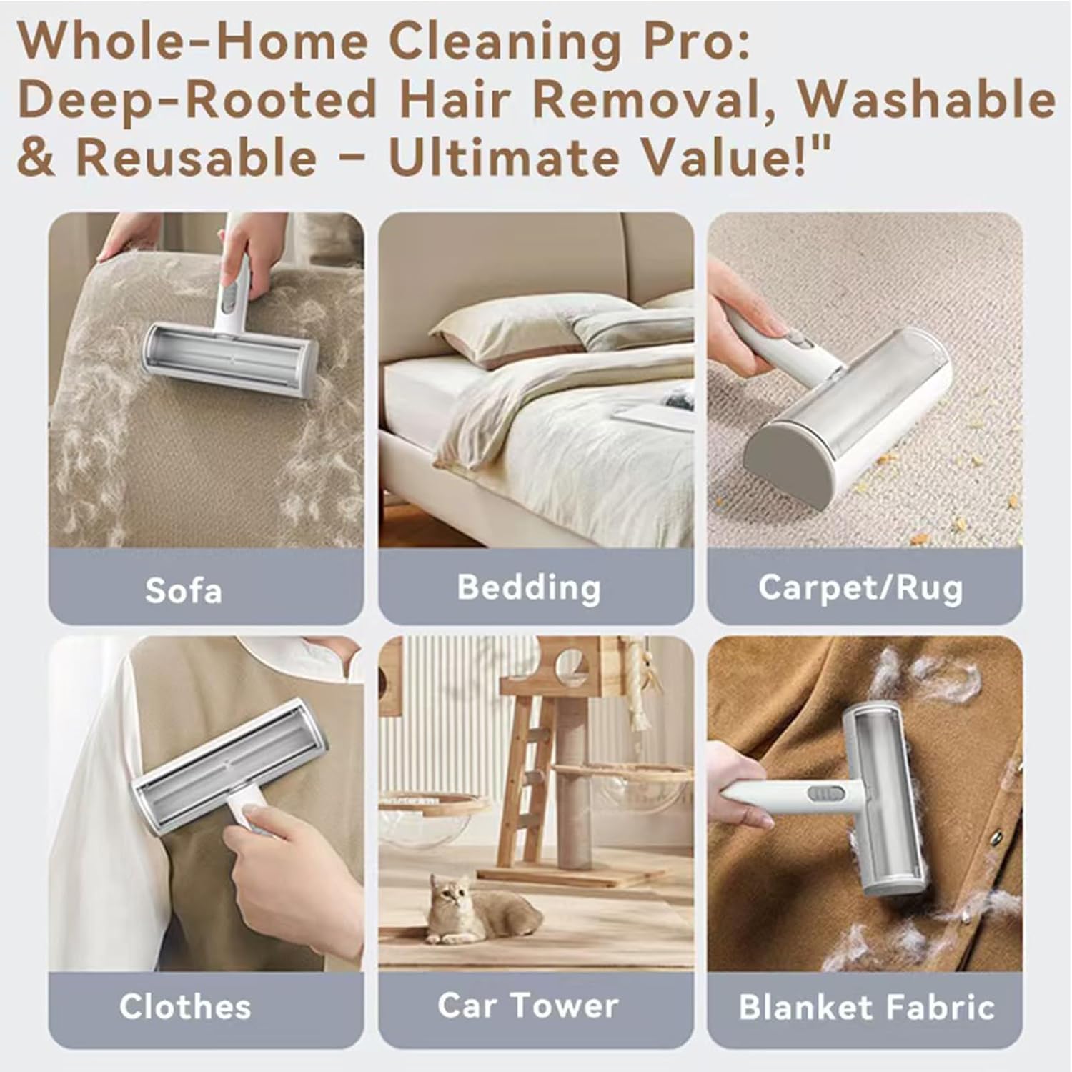 - ⮚ ADVANCED ELECTROSTATIC TECHNOLOGY: Its unique electrostatic design magnetically attracts pet hair without messy adhesives or expensive disposable rolls. Simply roll it back and forth to effortlessly lift stubborn hairs from furniture fabrics. Deep cleaning has never been so simple and satisfying.