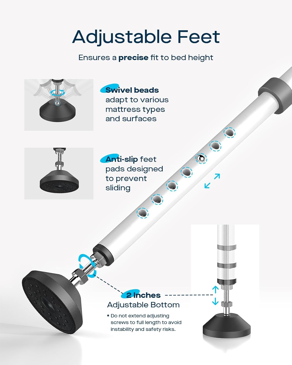 - 【 Adjustable Height for Most Beds 】Adjustable bed rails for elderly adults fit twin, full, queen, and king beds. Legs adjust 13.4"–22" for perfect height. Versatile bed rail works as bed cane or grab bar to aid seniors with mobility needs.