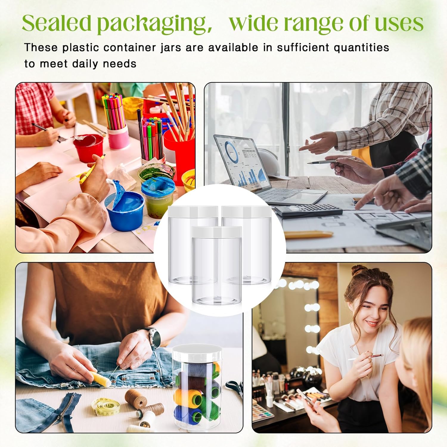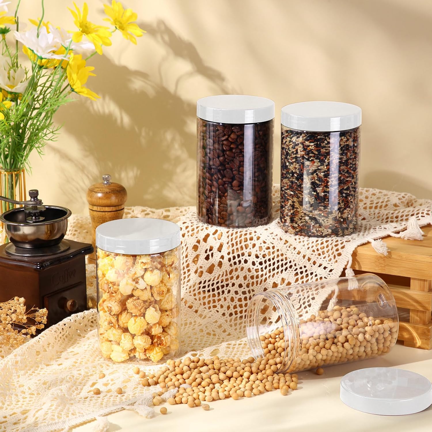 - What You Receive: there are 4 pieces plastic jars with clear screw-on lids; They are reliable and refillable, measuring about 27 oz in capacity