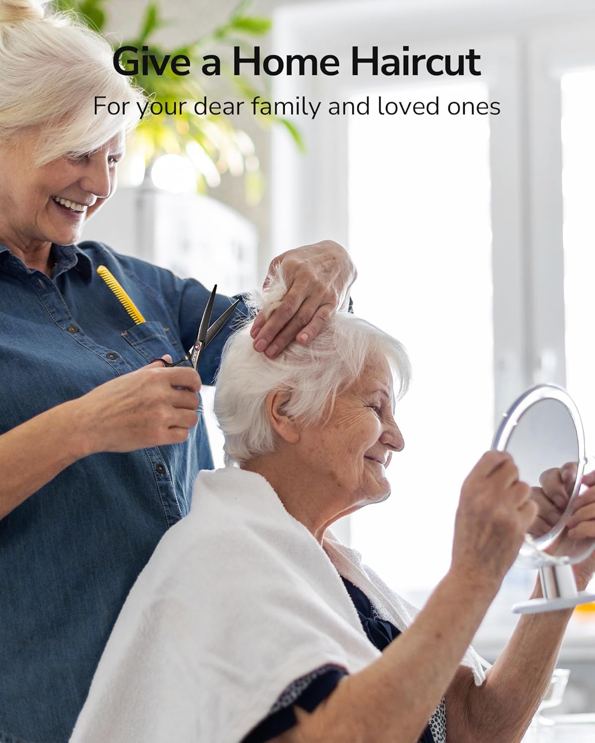 - What You Get - Hair Cutting Scissors*1, Hair Thinning Shears*1, 12-month replacement option for quality-related issues. Note: Our scissors for hair are hand-polished by craftsmen and maintained by exclusive oil before packaging, so it is normal to have slight fingerprint or a little oil stains.