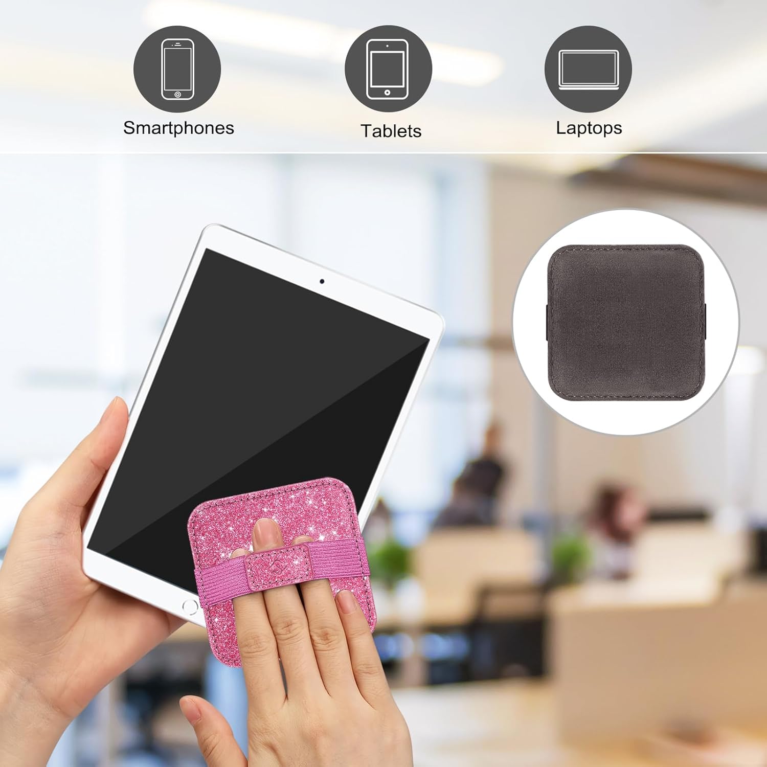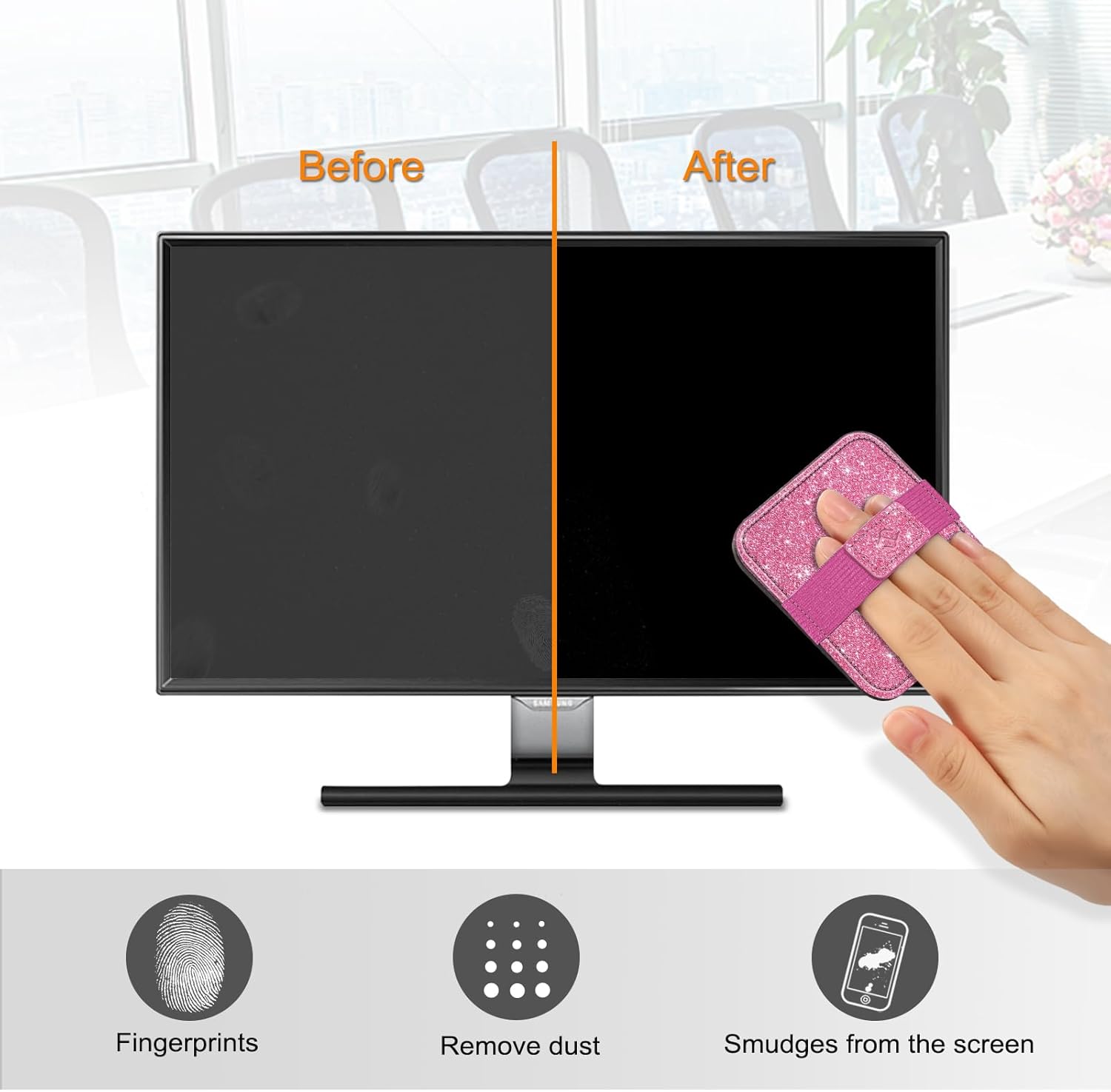 Fintie Screen Cleaning Pad, [4 Pack] Soft Cloth Wipes Screen Cleaner with Elastic Strap for iPad, iPhone, MacBook, Tablets, Laptop (Glitter Pink/Black)