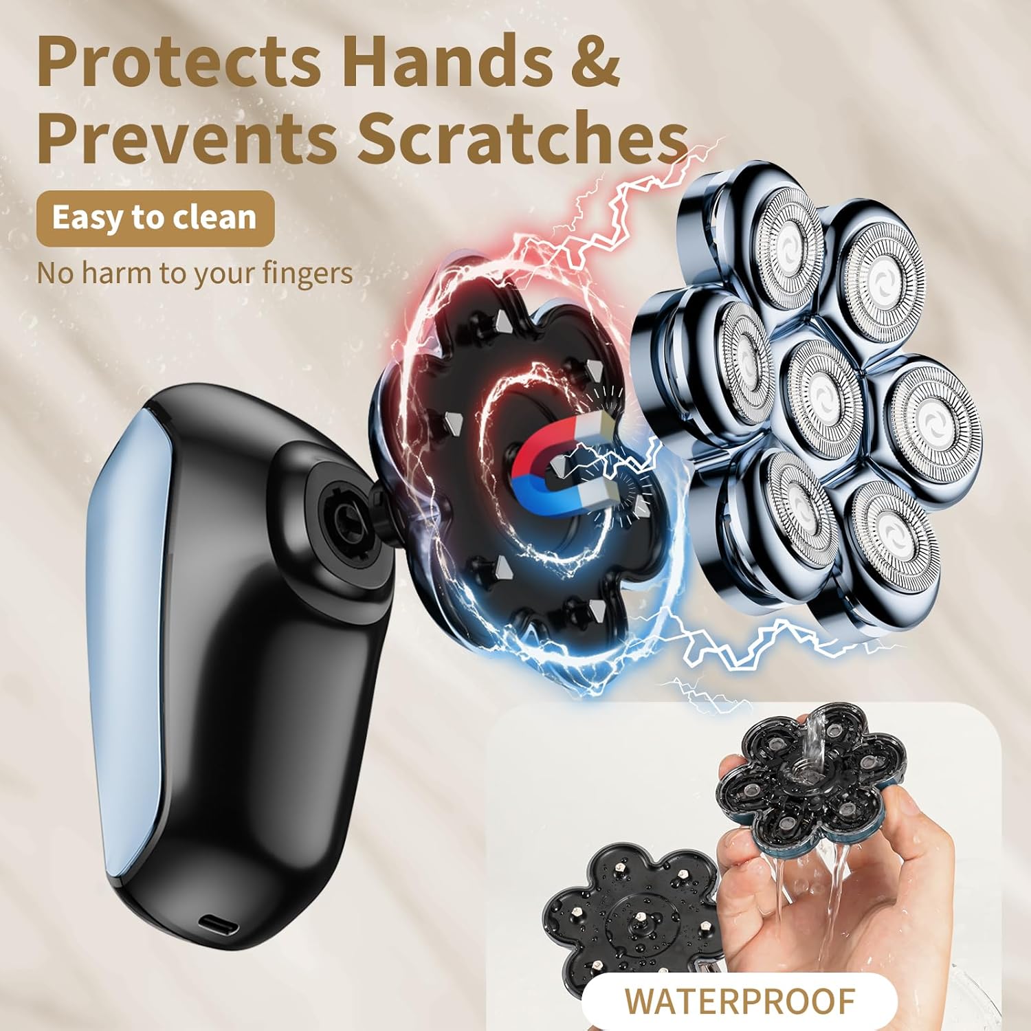 - Flexible,Smooth 7D Floating Rotary Shavers:Ultra flexible 7D pivoting blade design increases the shaving area and saves shaving time. 7D precision rotating head shaver and rounded edges move smoothly across the skin with a premium motor to ensure more hair is shaved with each pass for a smooth and close shave, giving you a more comfortable and efficient shaving experience