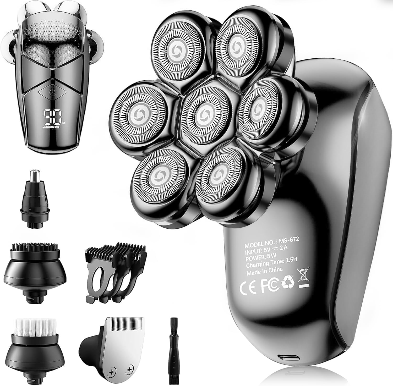 - 5 IN 1 Razor Head Set:Multifunctional electric head shaver for men with 5 replacement shaver heads: smooth texture, hair trimmer, nose hair trimmer, massage brush, cleaning brush. We suggest change the replacement head every 3 to 6 months for better daily use. Our head shaver for bald men is so powerful that can meet your daily needs. Exquisite head shave is the best choice for a fast and smooth shave. Also the perfect birthday and holiday gift idea for your husband