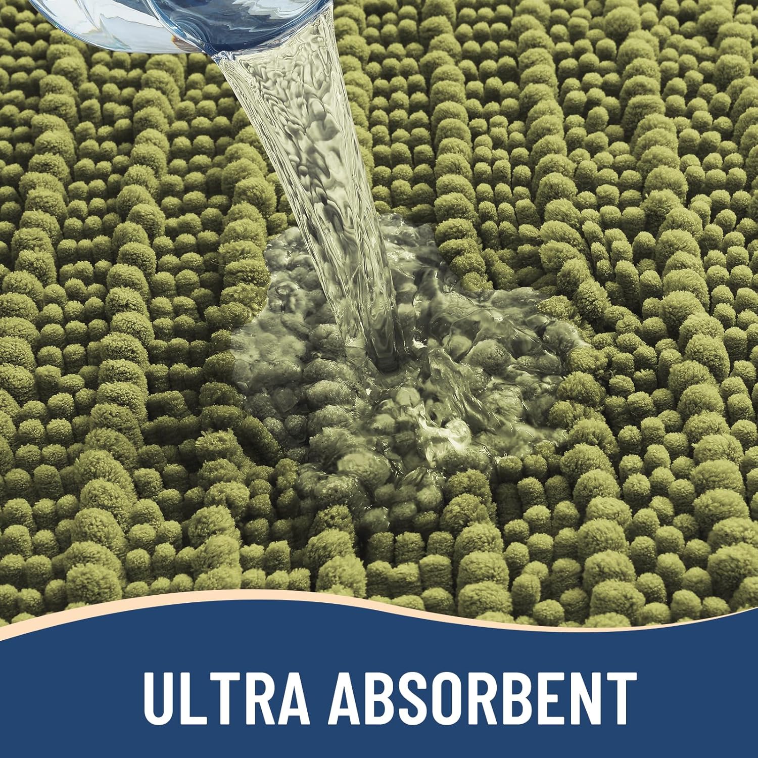 Arotive Luxury Chenille Bathroom Rug Mat, Extra Soft Thick Absorbent Shaggy Bath Rugs, Non-Slip Machine Wash Dry, Plush Bath Mats for Bathroom, Shower and Tub, 47x24, Willow Green