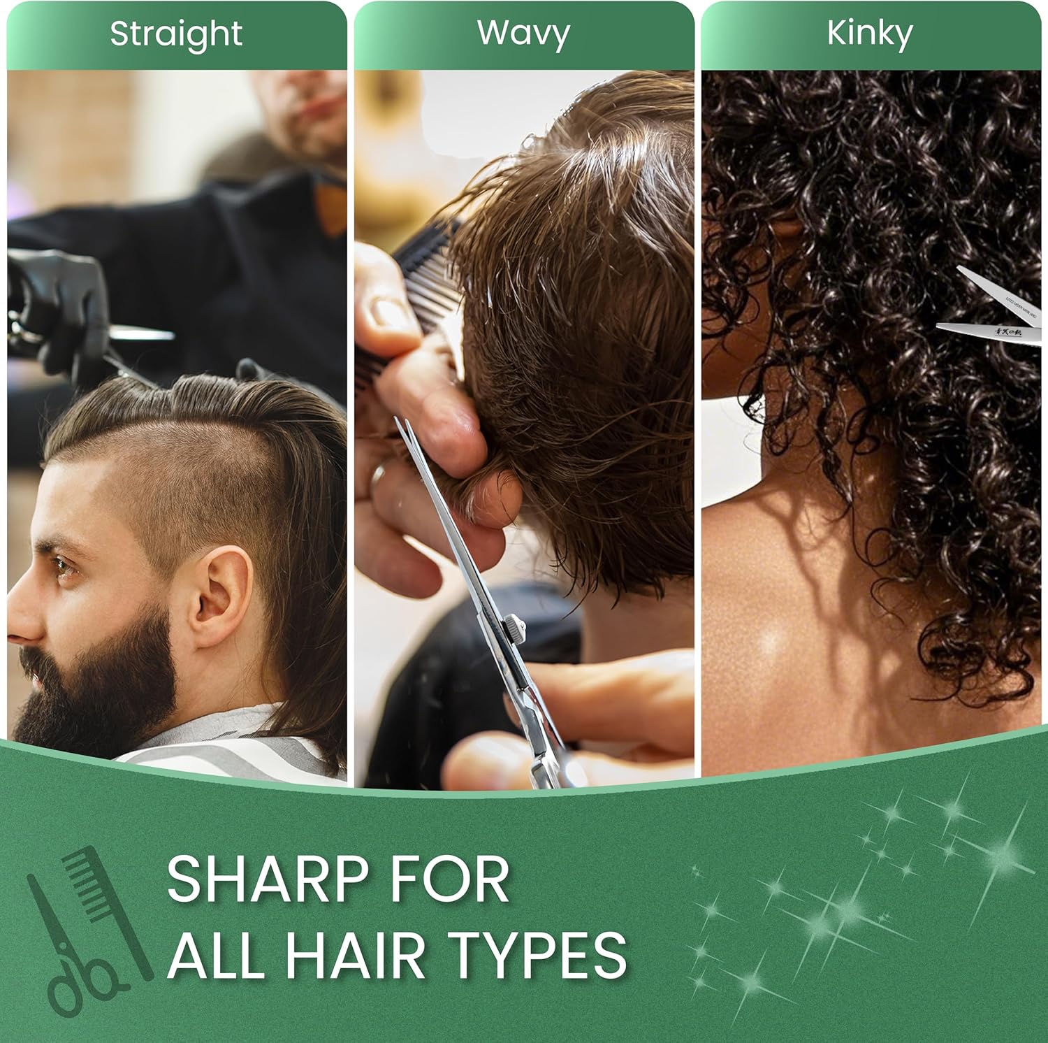 - Cut Like a Pro – Achieve salon-quality results at home with our professional hair scissors, designed to effortlessly trim, thin, layer, and texture all hair types (straight, curly, thick, or fine). Perfect for families, stylists, and pet owners!