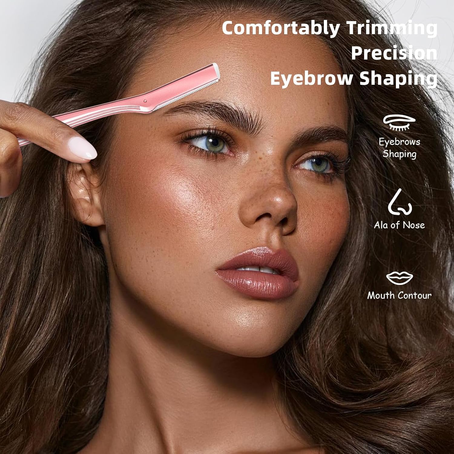- Safe and Sharp Blades: Crafted with premium stainless steel blades for exceptional sharpness, this face shaver glides smoothly to remove fine hair with ease. The micro-guard design helps reduce skin irritation and nicks, making it ideal for beginners and gentle on all skin types.