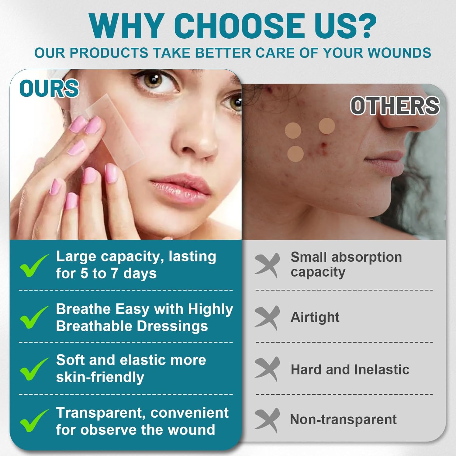 - Promote Wound Healing: This blister bandages for feet not only provides a moist healing environment to minimize wound infection, but also absorb oils and exudates for 5-7 days without replacement. Breathable dressing promotes rapid healing and minimizes scarring.