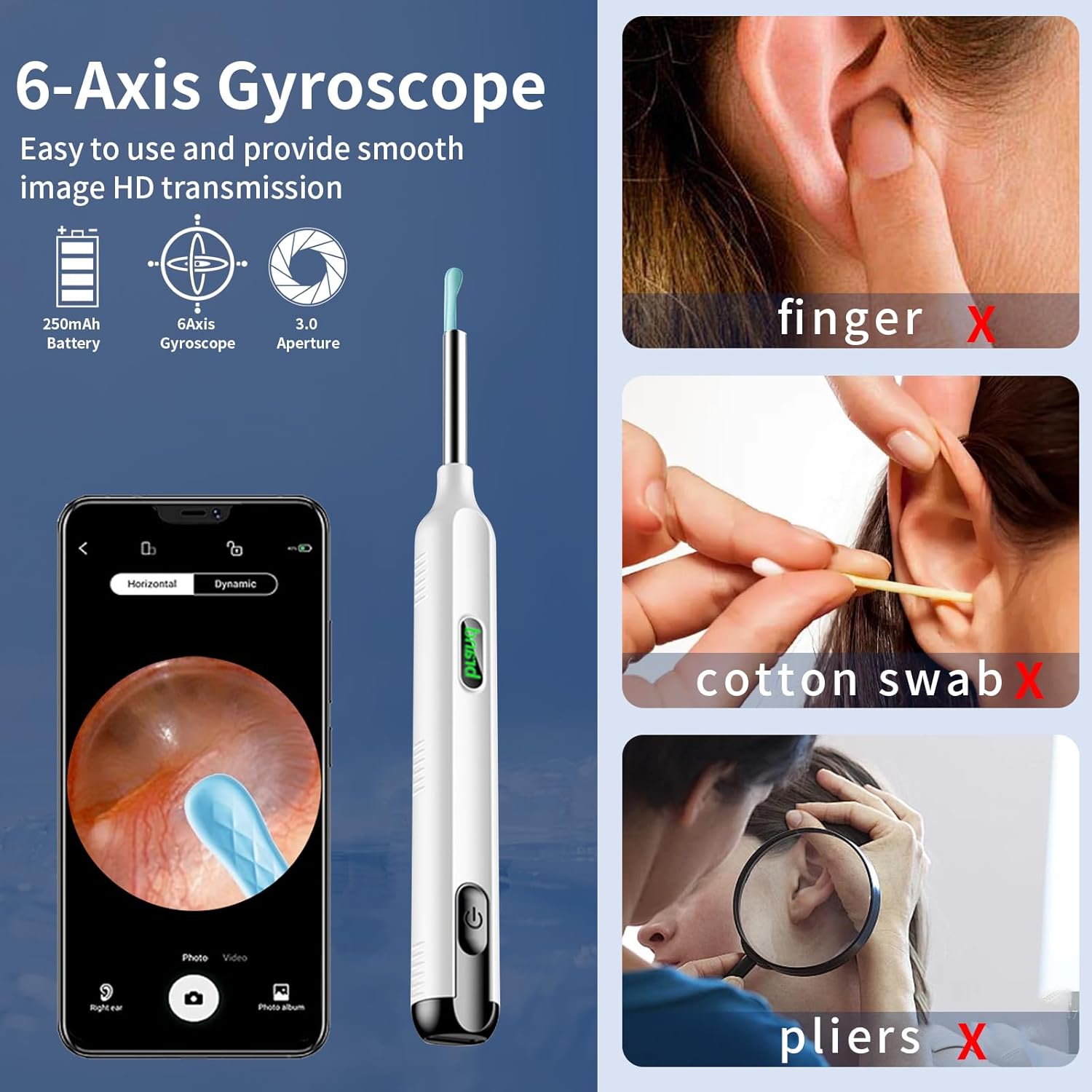 - 1200P HD Camera & 360Β° Wide Angle: This ear wax cleaner with camera is equipped with a 1200P HD camera and 6 LED lights to help you observe and clean earwax effectively. In addition to being an ear scope otoscope with light, you can also take HD pictures and videos in real time and have a wide field of view. With these features, earwax removal kit becomes safer and more convenient