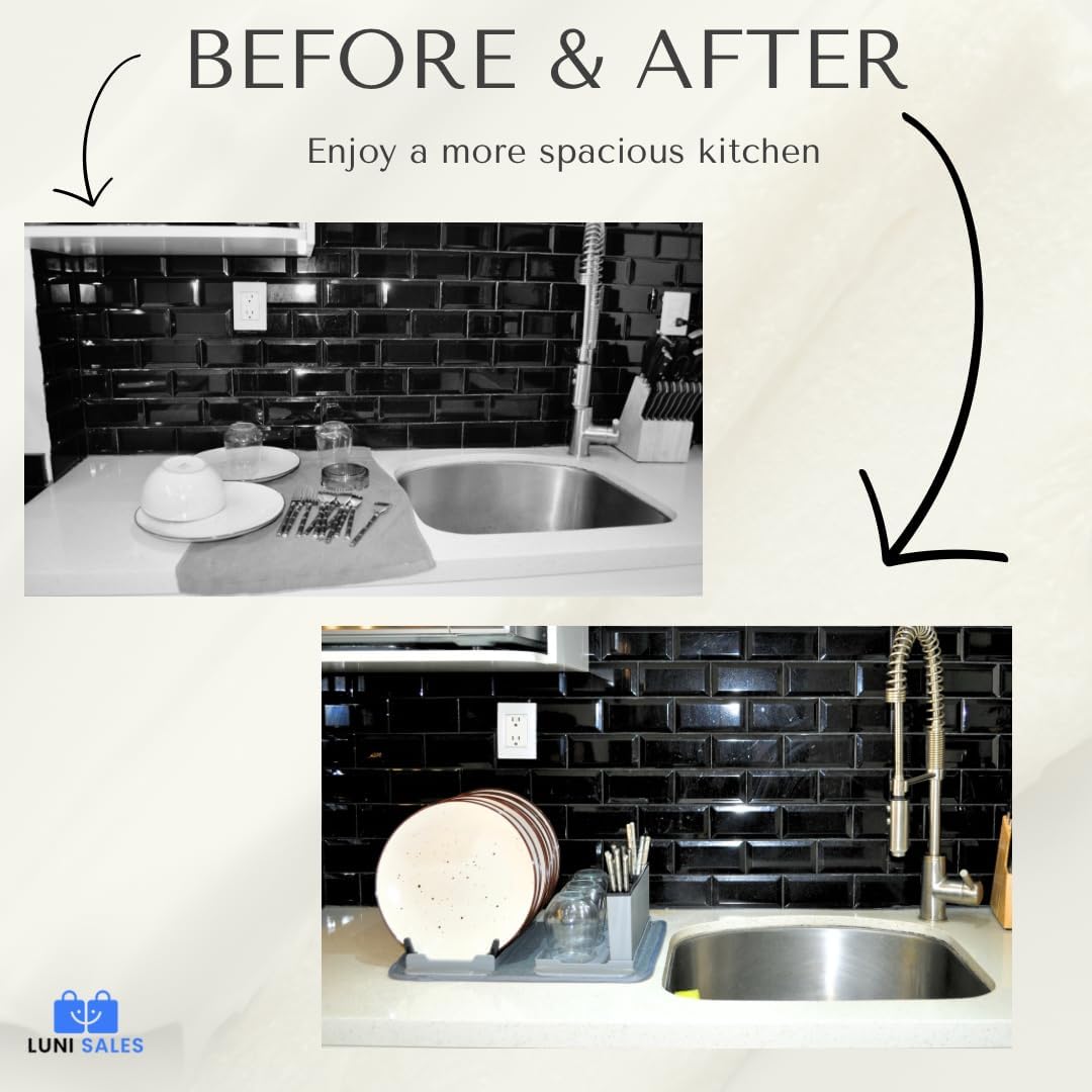 - KEEP YOUR KITCHEN DRY β Our kitchen drying mat is designed to absorb water quickly and efficiently. No more messy countertops after washing! The perfect drying matt kitchen counter solution for every home.