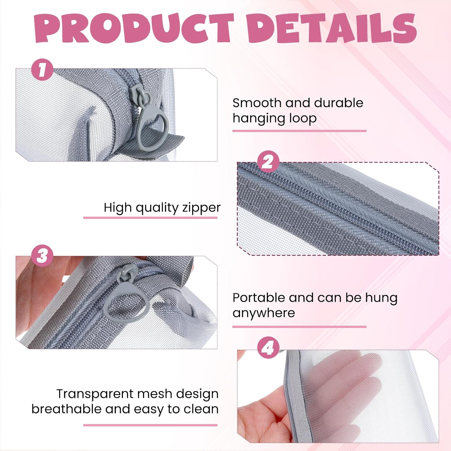 - [Convenient design] Clear zipper bag is easy to carry, with small rings designed on one end for easy carrying. The transparent mesh design makes the internal items clear at a glance, saving times for searching