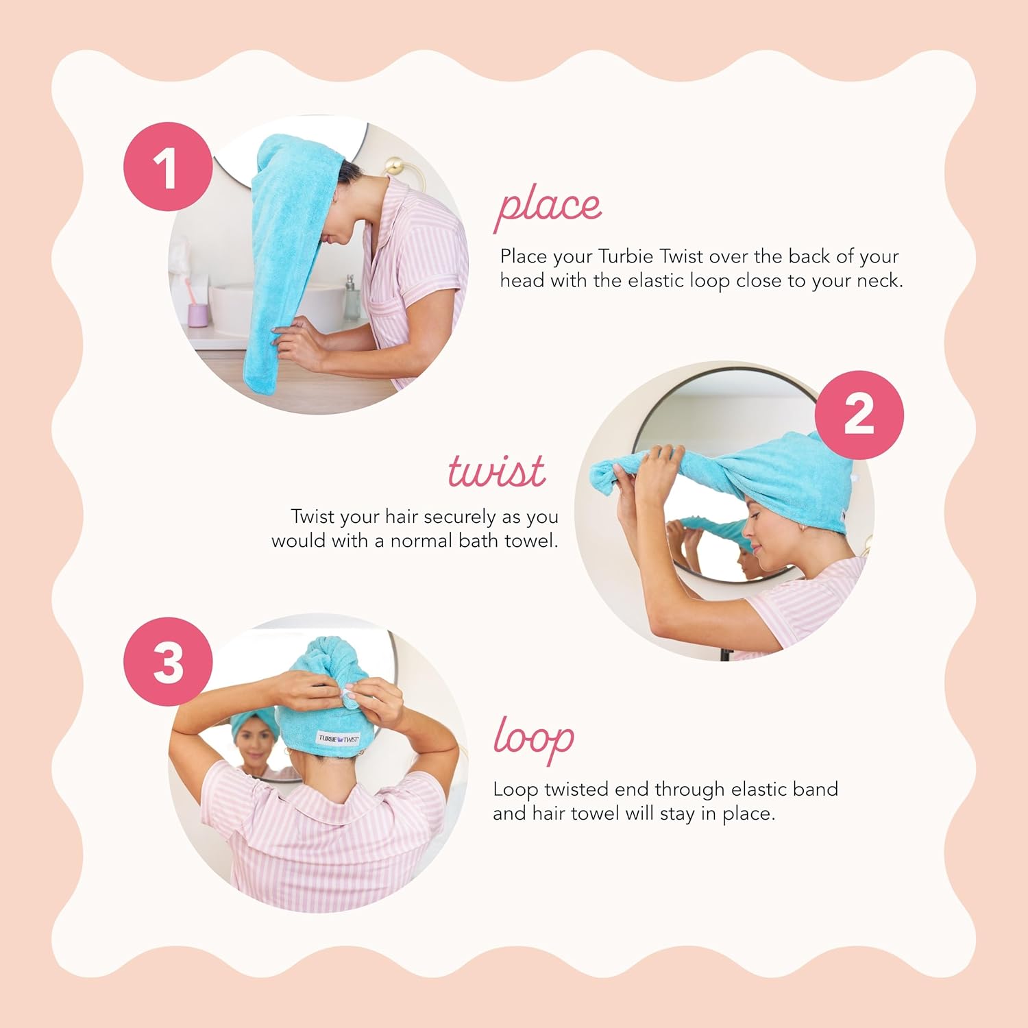 - Lightweight Microfiber Towel: With a twist and loop system, this hair towel wrap stays securely in place while being comfortably light