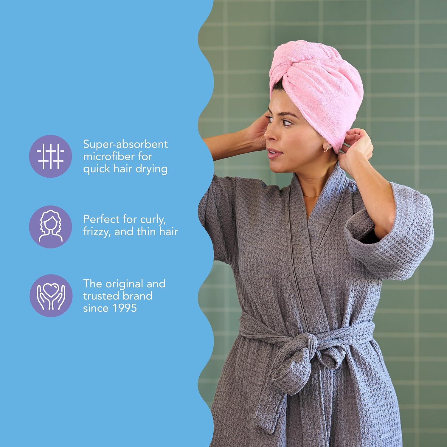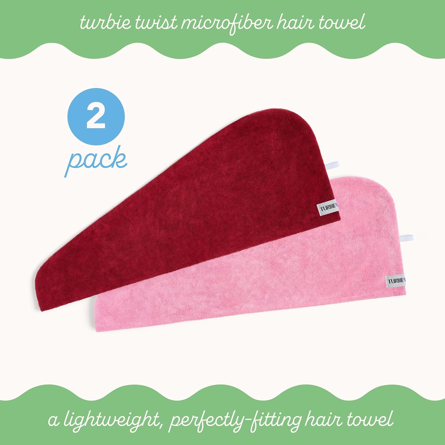 Turbie Twist 2-Pack Microfiber Hair Towel for Beauty, Travel, Gifting - Wrap Turban for Straight, Wavy & Curly Hair - Premium Personal Care - Deep Claret & Sea Pink