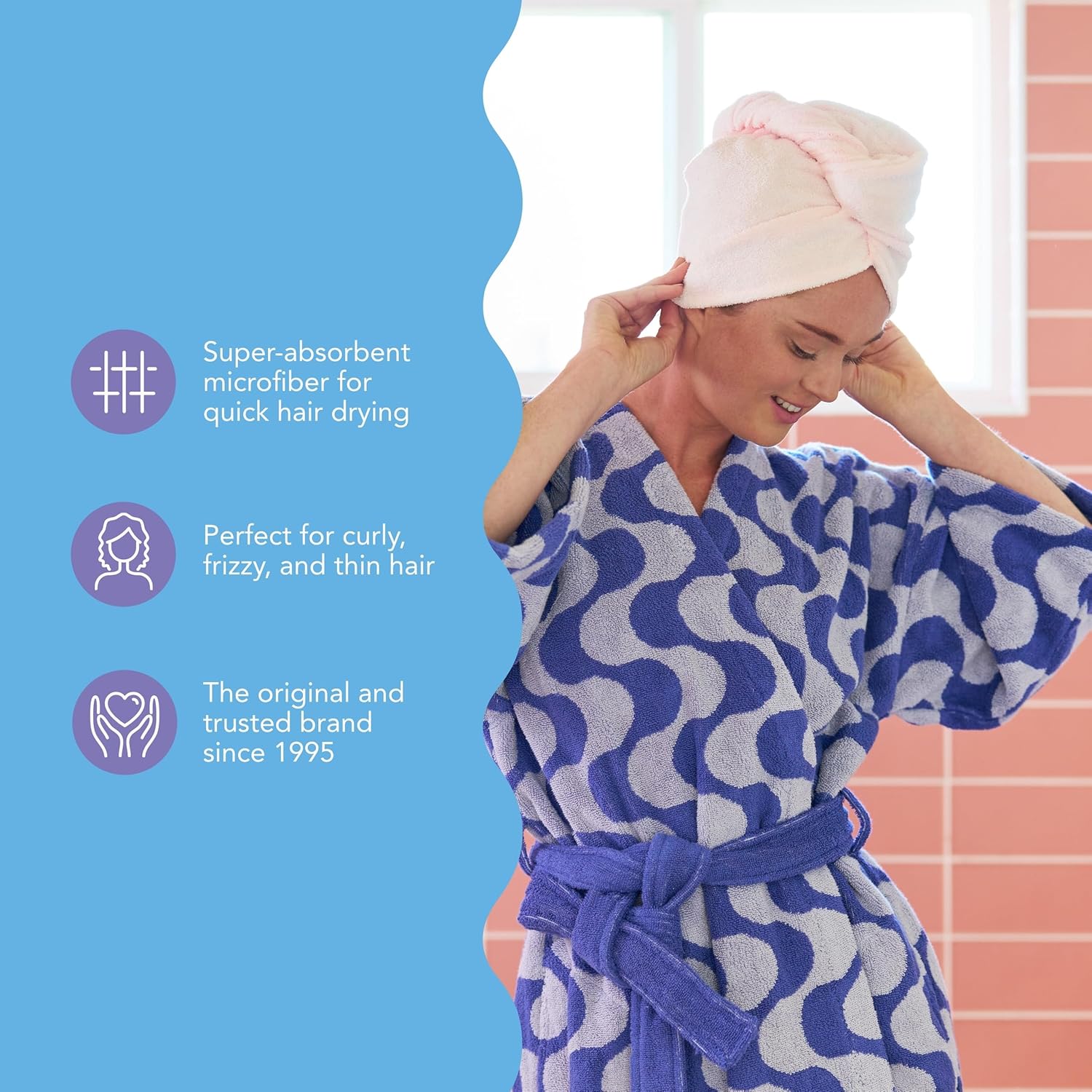 Turbie Twist 2-Pack Microfiber Hair Towel for Beauty, Travel, Gifting - Hair Wrap Turban for Straight, Wavy & Curly Hair - Premium Personal Care - Bermuda & Peach