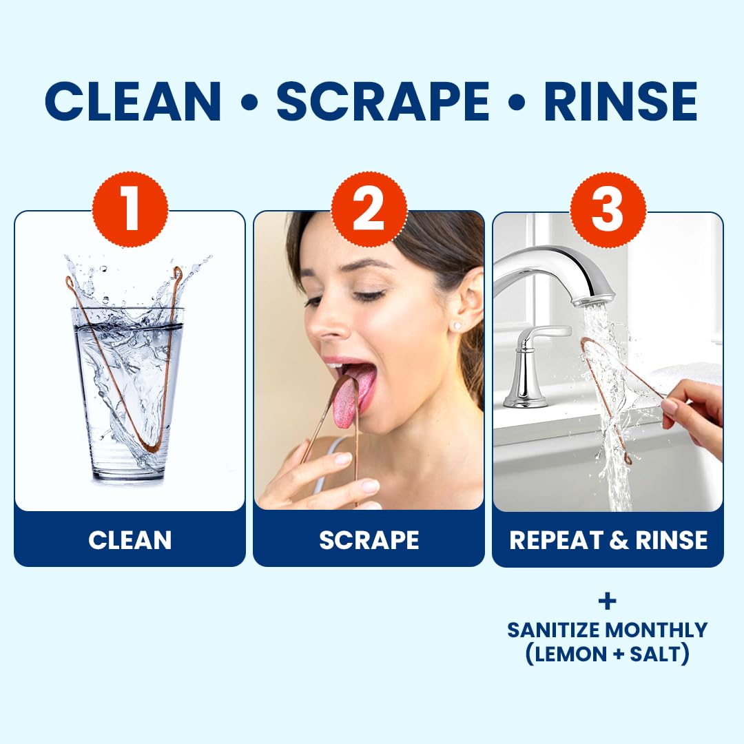 - Complete Oral Hygiene Tongue Scraper Solution: Simple to use, this reusable copper tongue scraper set helps maintain fresh breath and a cleaner mouth, making it an essential addition to any oral care routine