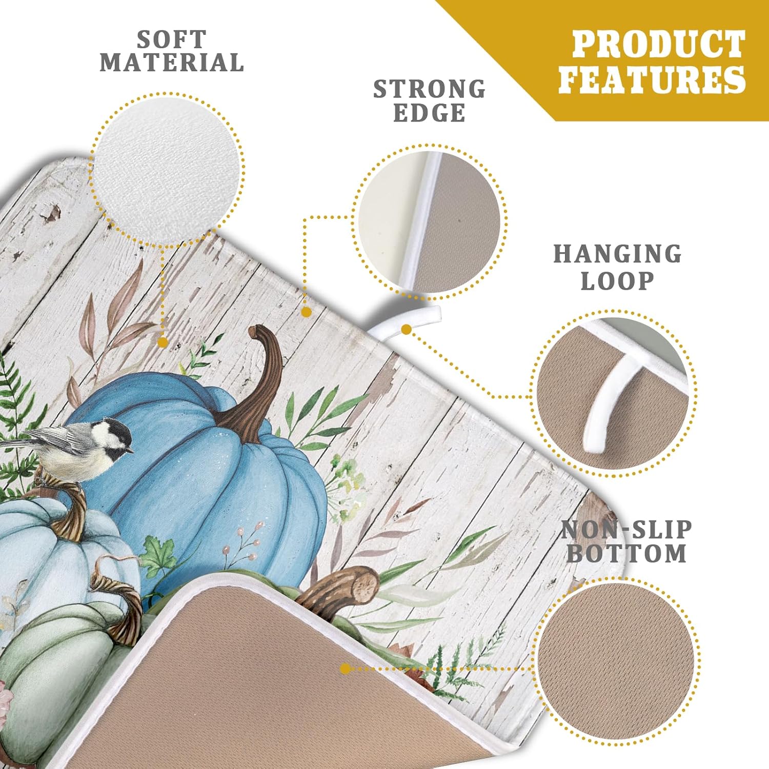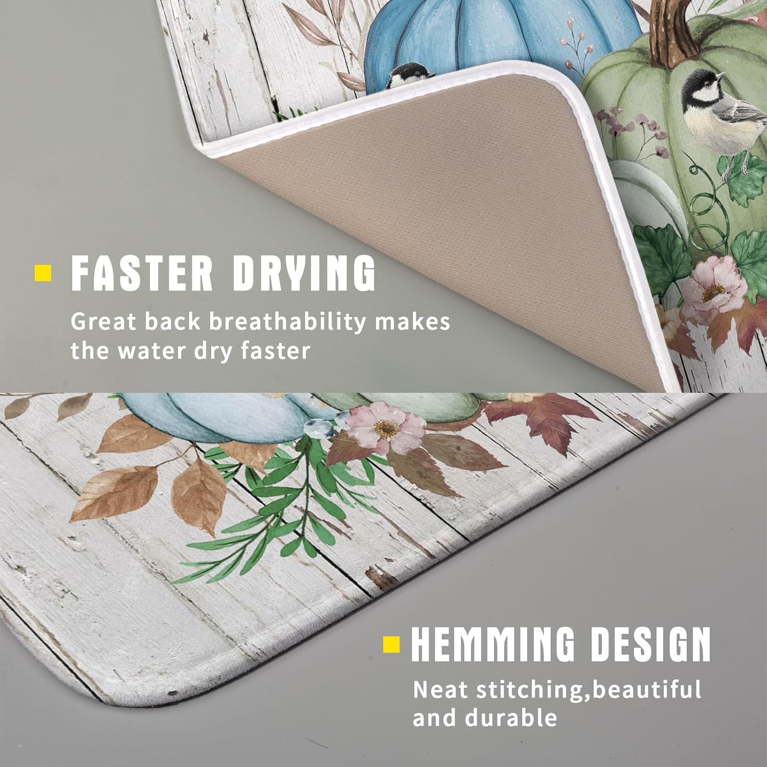 Fall Blue Pumpkin Dish Drying Mat 16x18 inch Autumn Harvest Dish Rack Mats Reversible Microfiber Drainer Pad for Kitchen Countertop Decor