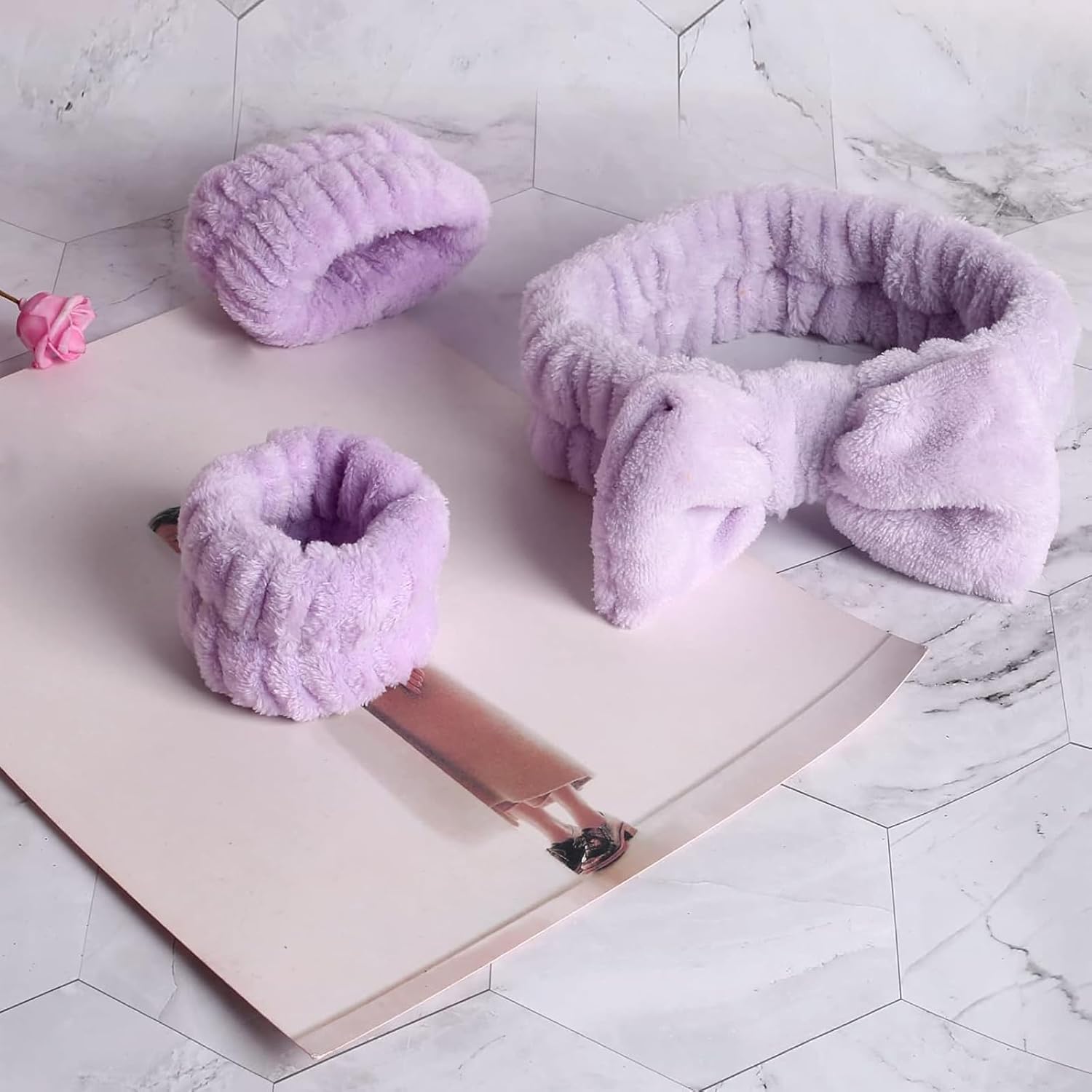 16pcs Skincare Headband Set, Headband Set for Face Washing Spa and Makeup, Including 1 Hairband, Wristband, 3 Hair Claw Clips and 10 Hair Ties, with Box, Gift for Women and Girls, Purple