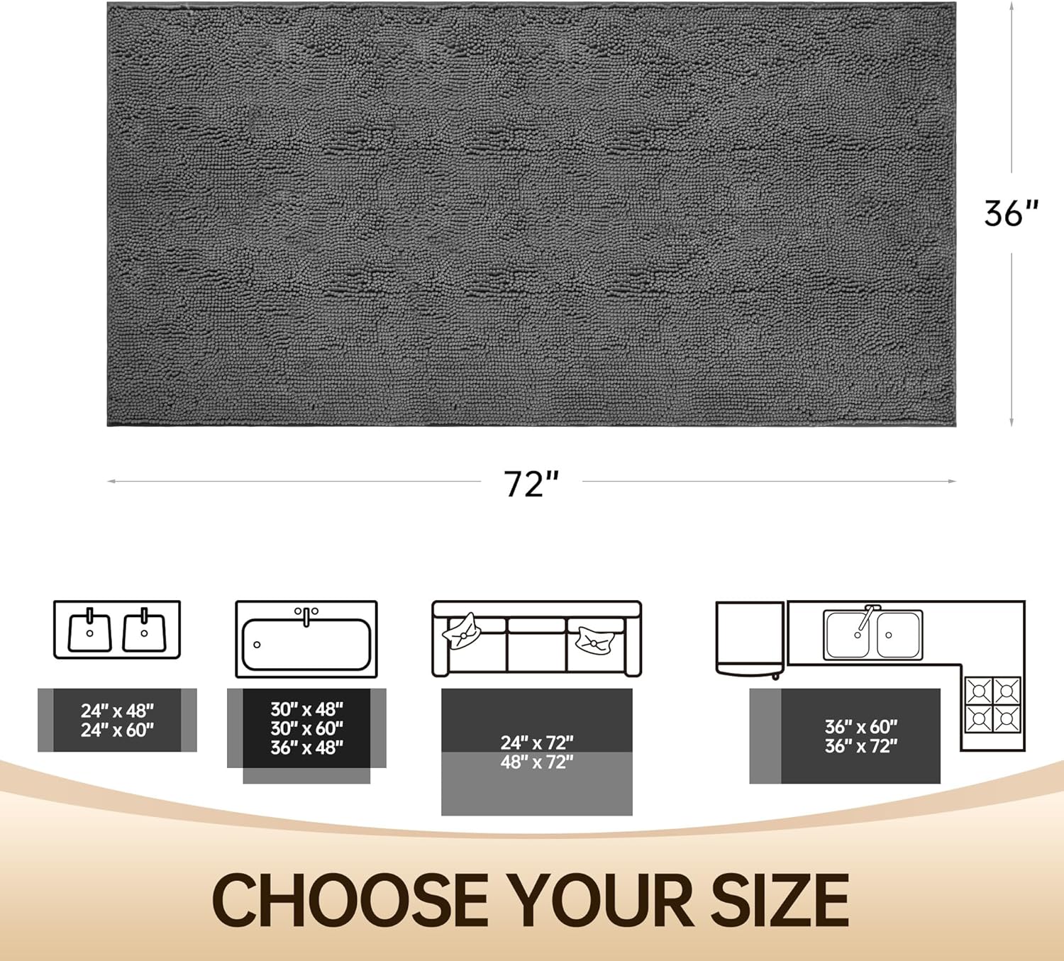 - 【Versatile Use】 8 size options (from cozy 24x48" to grand 48x72" bathroom rug mat) with hotel-spa styling. Coordinates perfectly with modern farmhouse or minimalist decors. Secret hack: Use oversized mats as comfy kneeling pads during bubble bath pampering.