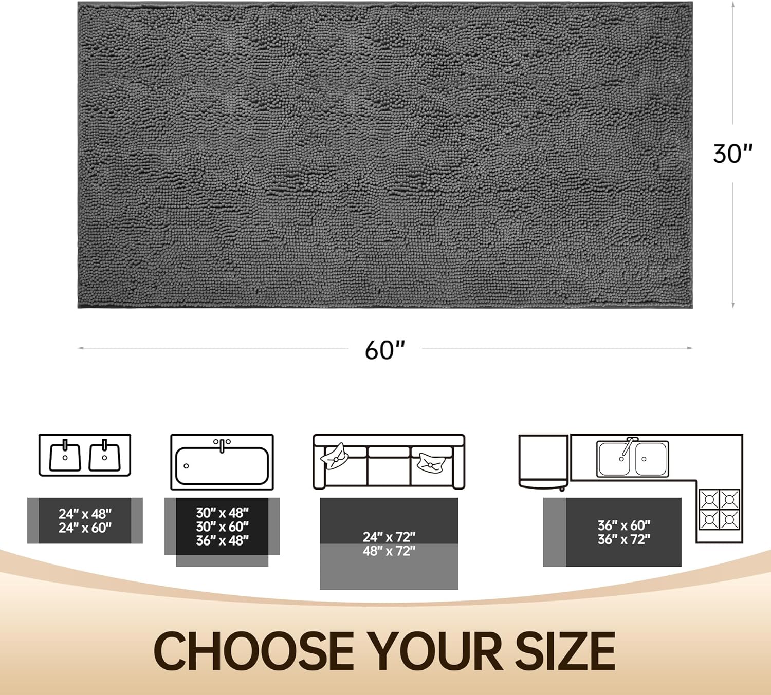 Amyracel Bathroom Rug Mat 36x60, Thick Soft Quick Dry Absorbent Chenille Bath Rug, Rubber Back Non Slip Machine Washable Bath Mat for Bathroom Shower Tub Floor