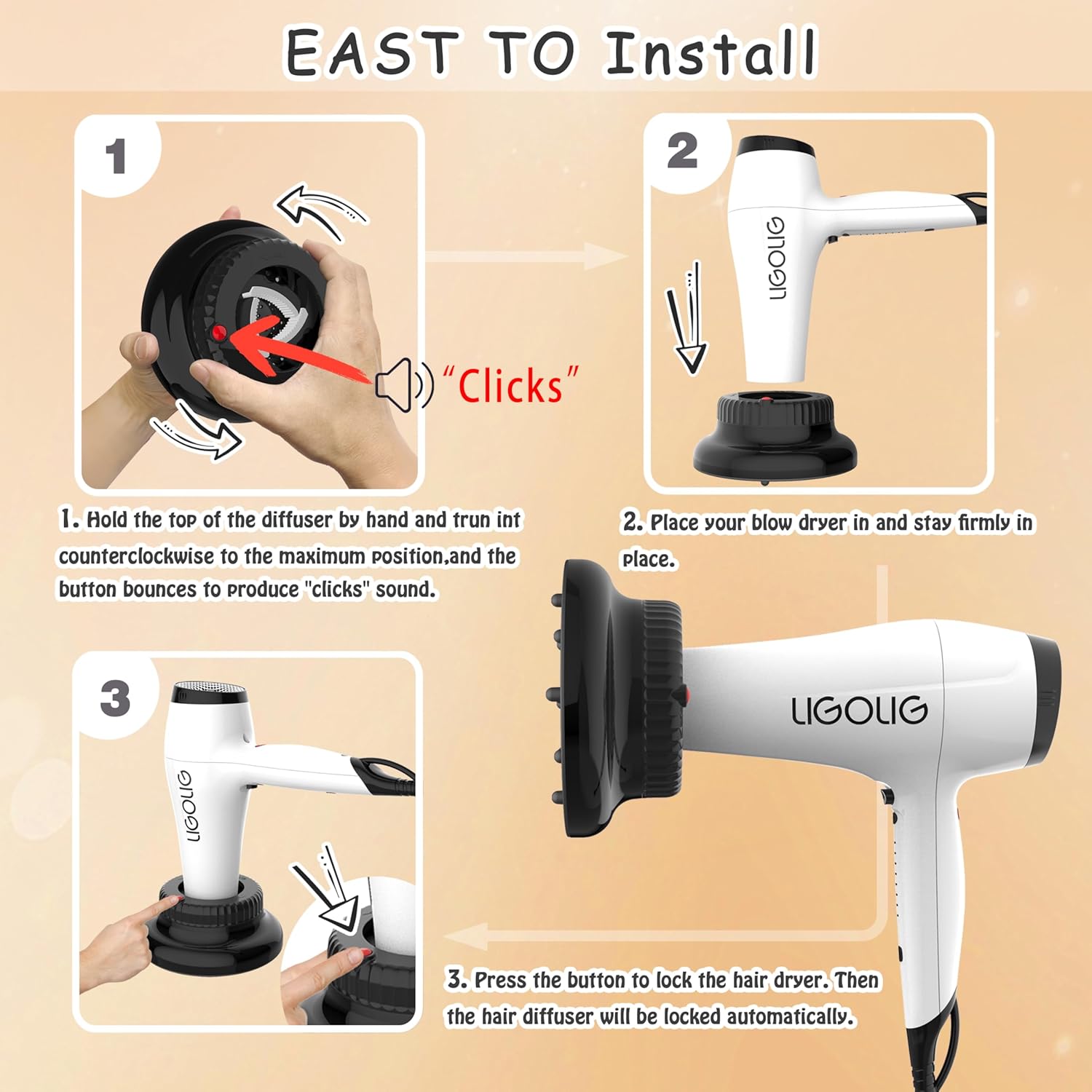 Universal Portable Blow Dryer Diffuser for Curly and Natural Wavy Hair, Hair Dryer Diffuser for Curly and Natural Wavy Hair (Black&Purple)