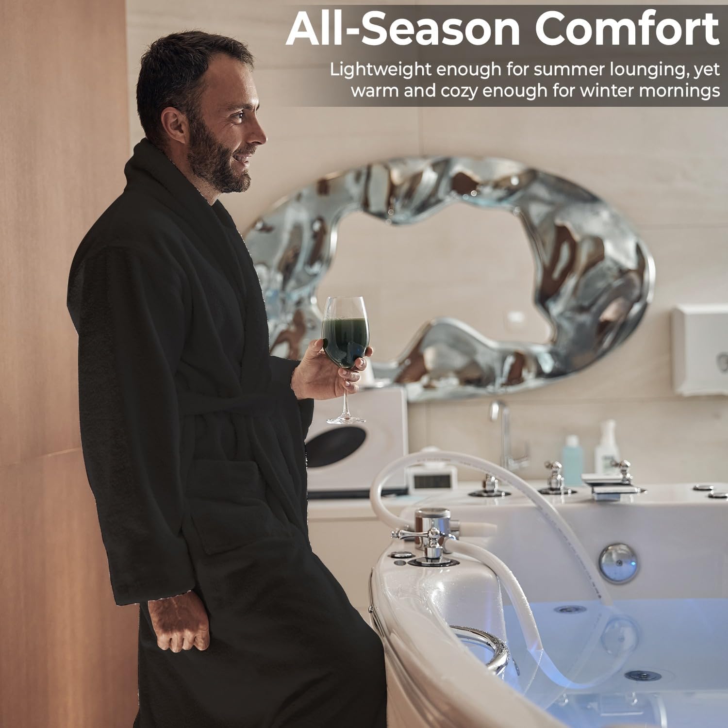 - PREMIUM COTTON ROBE – Luxurious men’s robe made from 100% terry cotton. Soft, breathable & ultra-absorbent – perfect as a shower robe, towel bathrobe, or spa robe for daily comfort