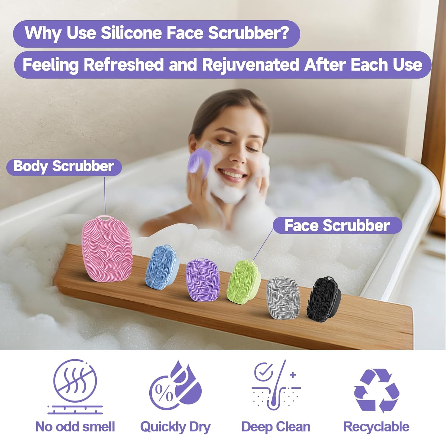 - BENEFIT: Why Do We Use Silicone face exfoliator scrubber? Because silicone materials stay clean and are simple to rinse off. They have no odd smell, dry quickly, are recyclable, and help you achieve a deep clean. Silicone is much more hygienic than tradition hand wash