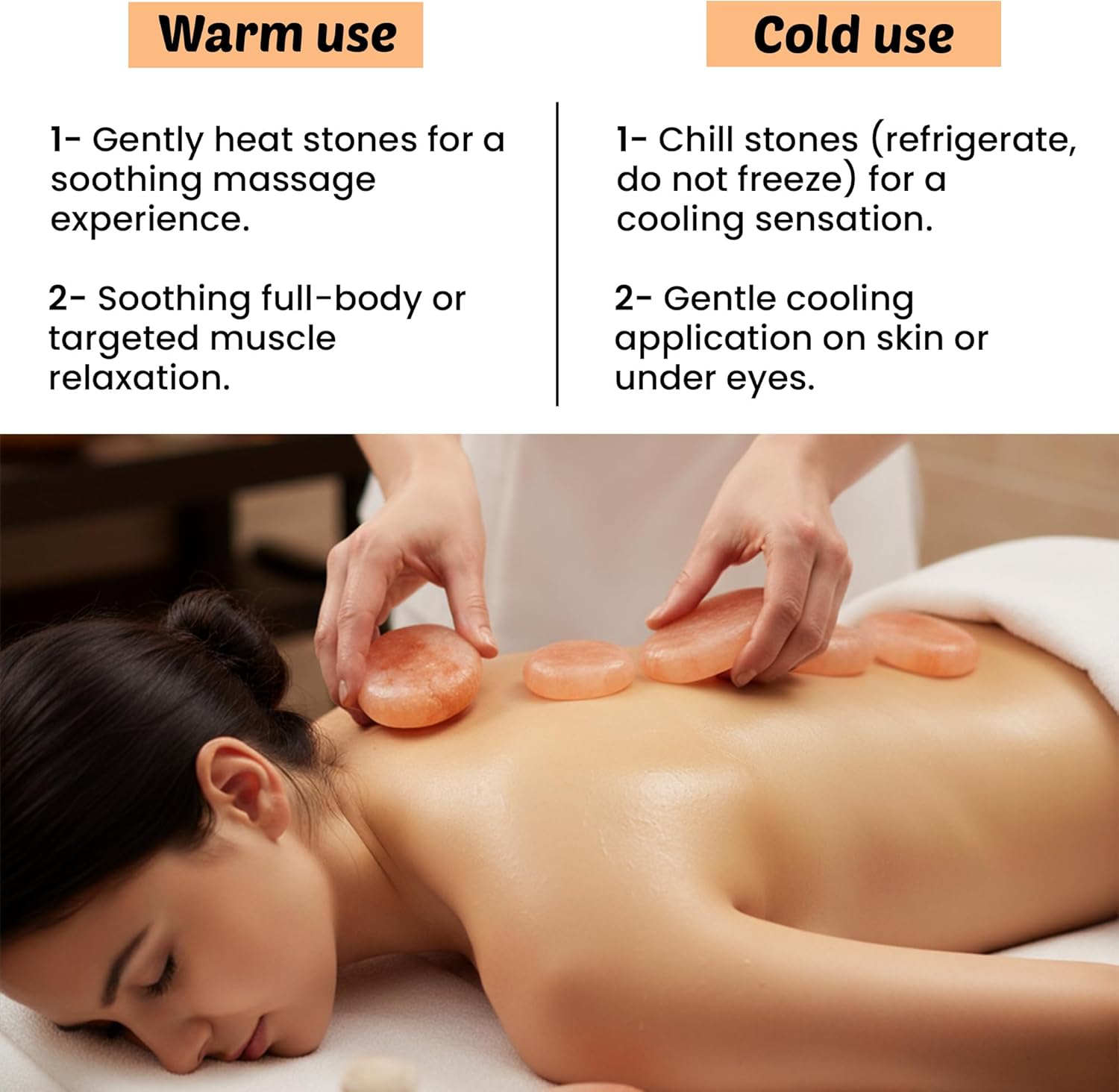 - Dual-Temperature Relaxation These versatile Himalayan massage stones work beautifully for both warming and cooling applications. When gently heated, they provide deep muscle relaxation, while chilled stones (refrigerated, not frozen) offer a refreshing sensation perfect for soothing tired eyes or reducing puffiness. The stones' natural properties allow them to maintain their temperature effectively for either use.