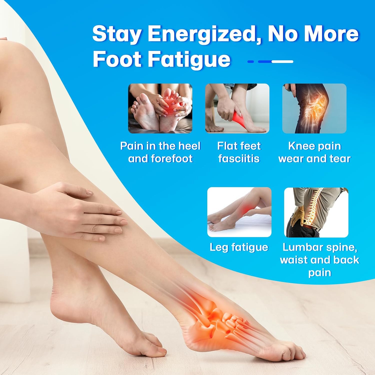 - Ergonomic "Golden Triangle" Stability Design: The shoe inserts for women uses an innovative three-point support system (forefoot, arch, heel) and a U-shaped heel cup to lock the foot firmly, prevent sprains and improve balance. Combining Supercritical foaming, Nylon support, Poron, the plantar fasciitis insoles offer customized support for walking, running, or standing, it enhances stability and reduces injury risks