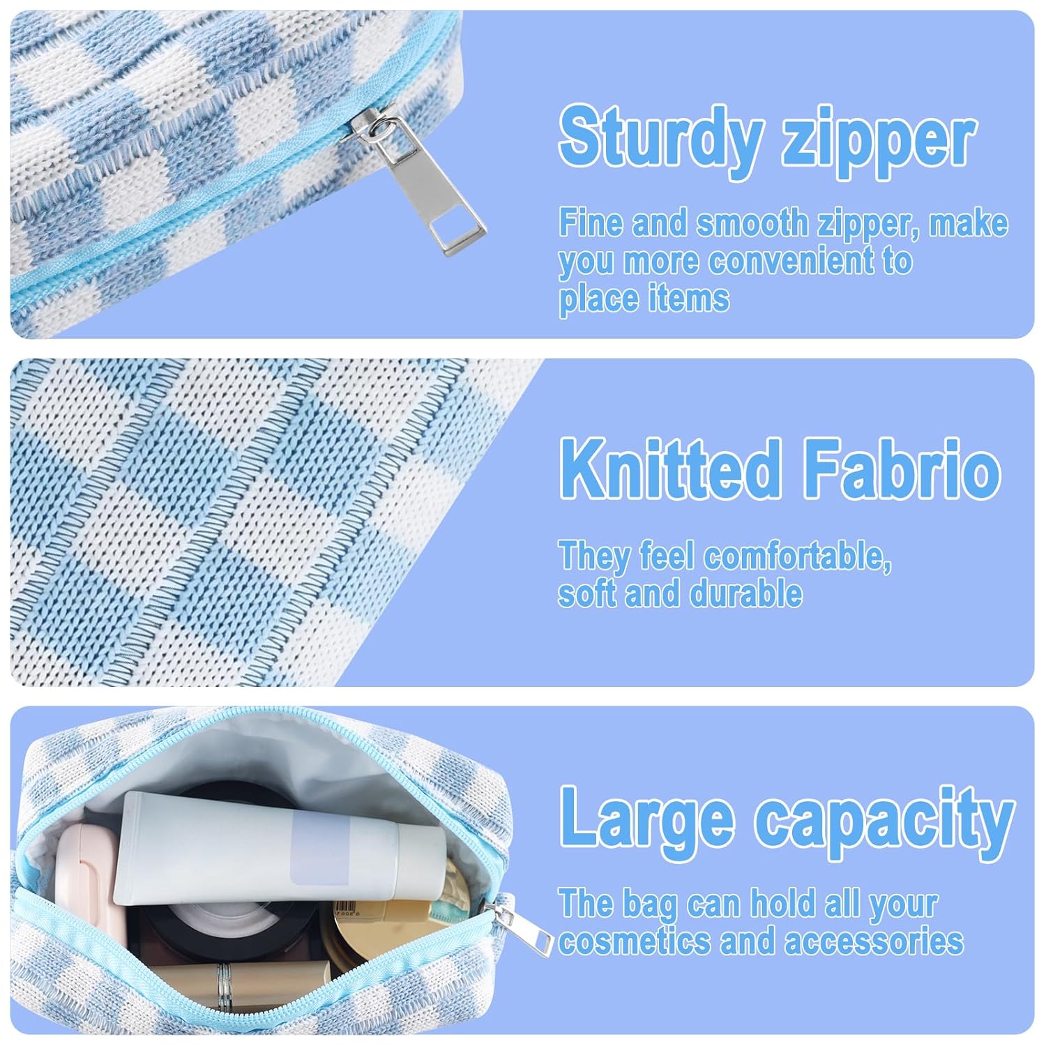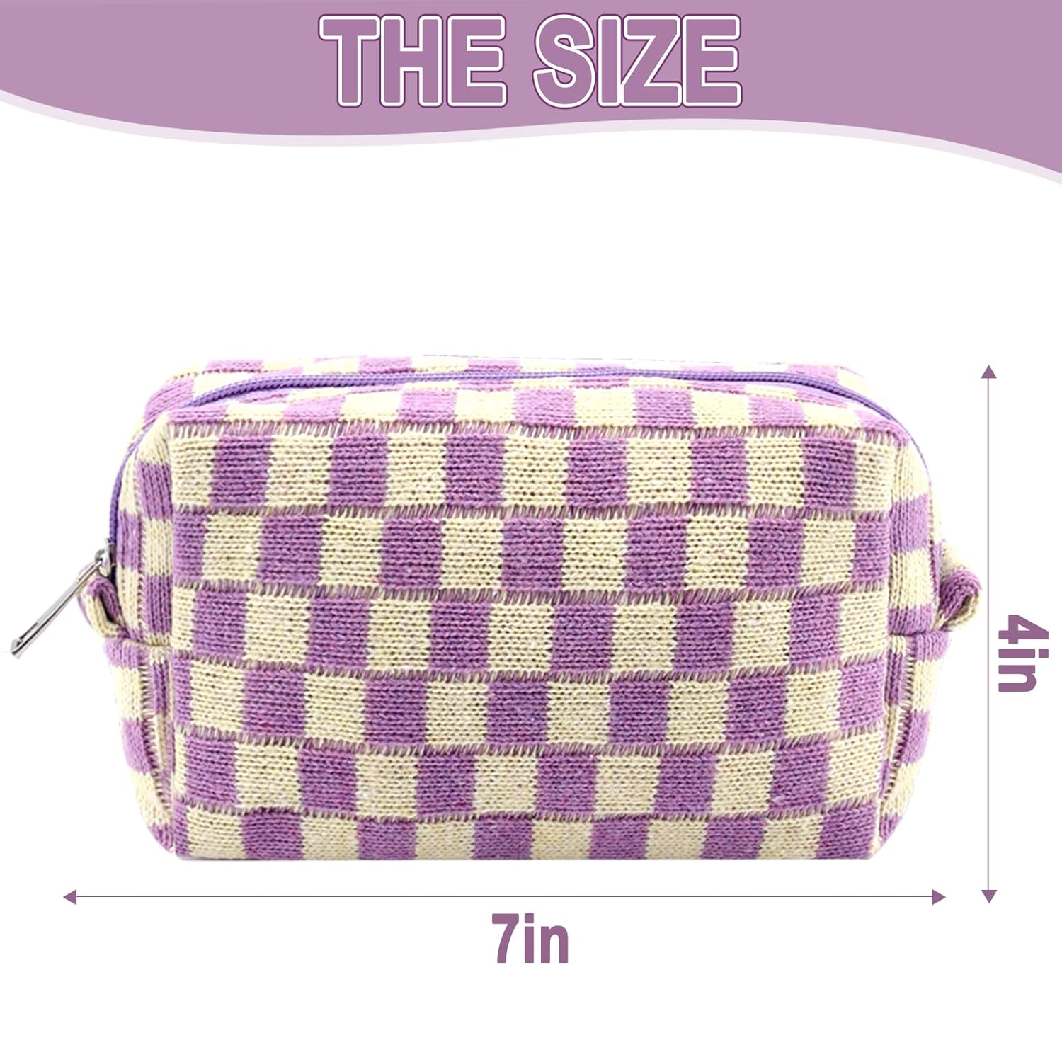 - LARGE CAPACITY AND PREMIUM MATERIAL: The cute makeup bag measure 7.1Γ4.3 inches, easy to carry. The checkered makeup bag is made of soft knitted fabric, easy to clean. The smaller ones can be used as pencil case or pencil pouch.This makeup travel bag can also hold small items such as makeup, skincare products, lipstick, eye shadow, eyebrow brush, etc. Makeup storage bag for women toiletries