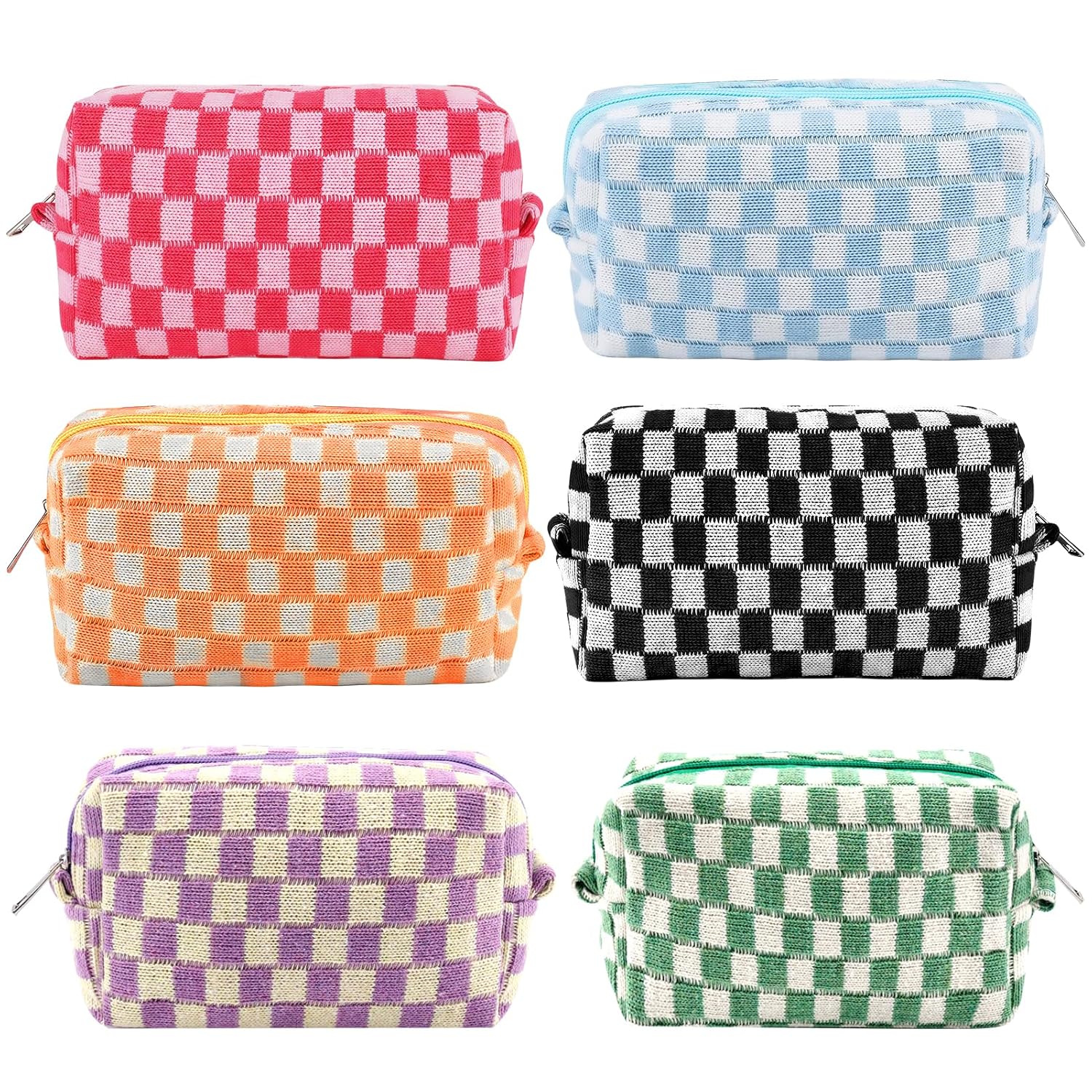 - LIGHT WEIGHT AND EXCELLENT WORKMANSHIP: The cute makeup pouch is made of soft knitted fabric and is comfortable, soft and lightweight. Checkered travel make up bag folds up when not in use and fits in a large bag without taking up space. The metal zipper of the cute pencil case keep your items secure and organized inside. Cosmetic bag accessories set for women
