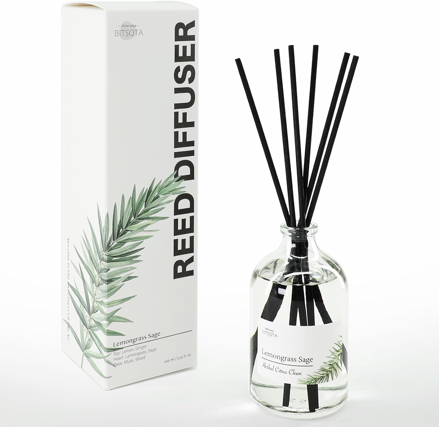 Reed Diffuser Set, 3.52 oz (100ml) Scented Diffuser with Sticks Home Fragrance Reed Diffuser for Bathroom Shelf Decor, Ideal Gift for Woman (Lemongrass Sage)
