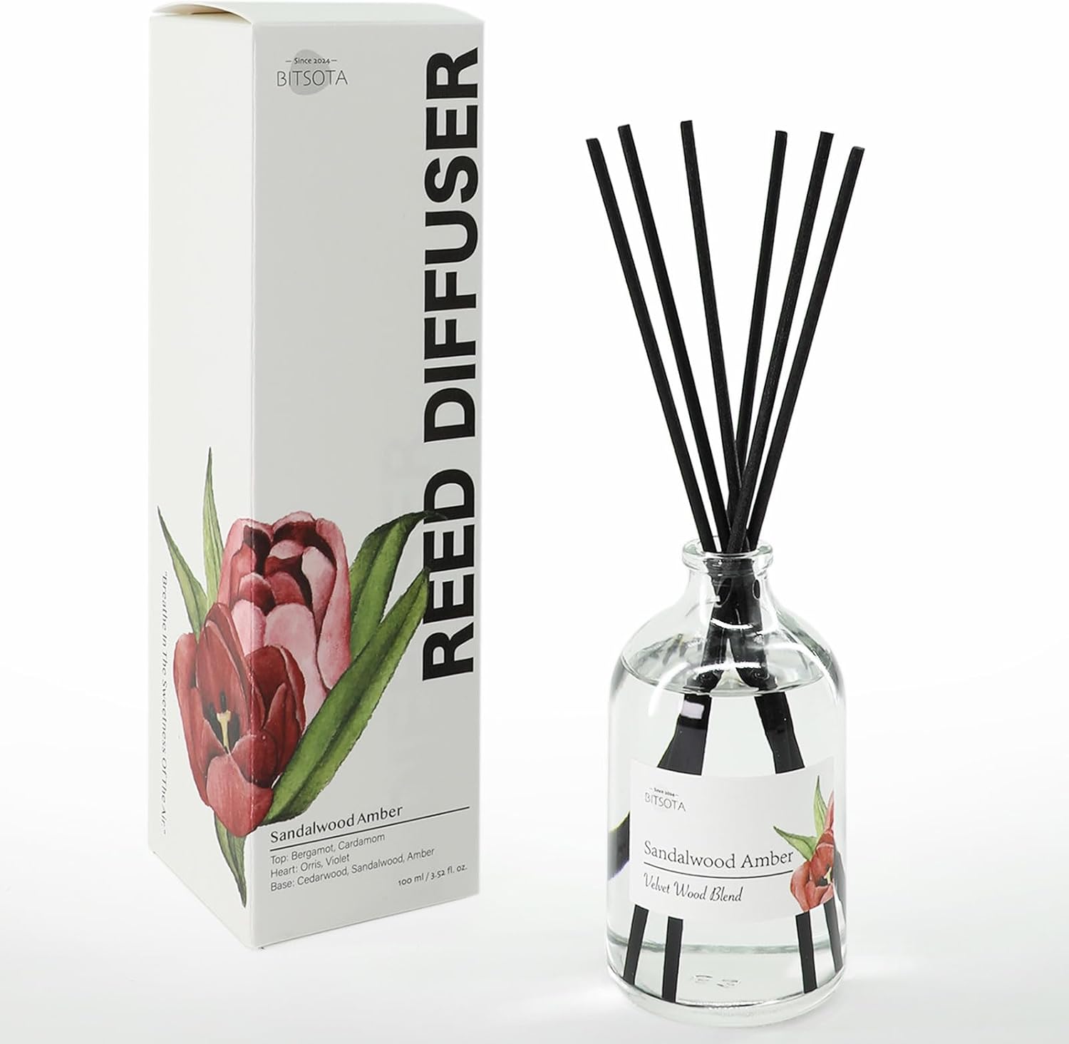 Reed Diffuser Set, 3.52 oz (100ml) Scented Diffuser with Sticks Home Fragrance Reed Diffuser for Bathroom Shelf Decor, Ideal Gift for Woman (Sandalwood Amber)