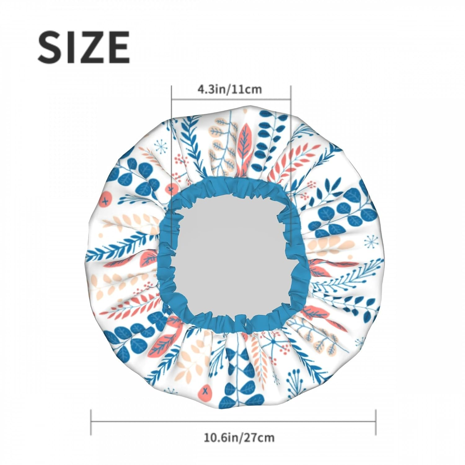 Cute Colorful Leaves Double Layer Waterproof Shower Cap for Women Reusable Bath Cap for All Long Hair Lengths Soft Bath Shower Hat