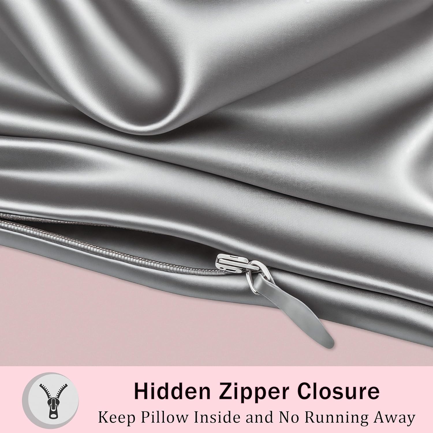 • 【Premium Zipper Closure】 Silk pillow case with hidden zipper design keeps pillow securely tucked in for a seamless look