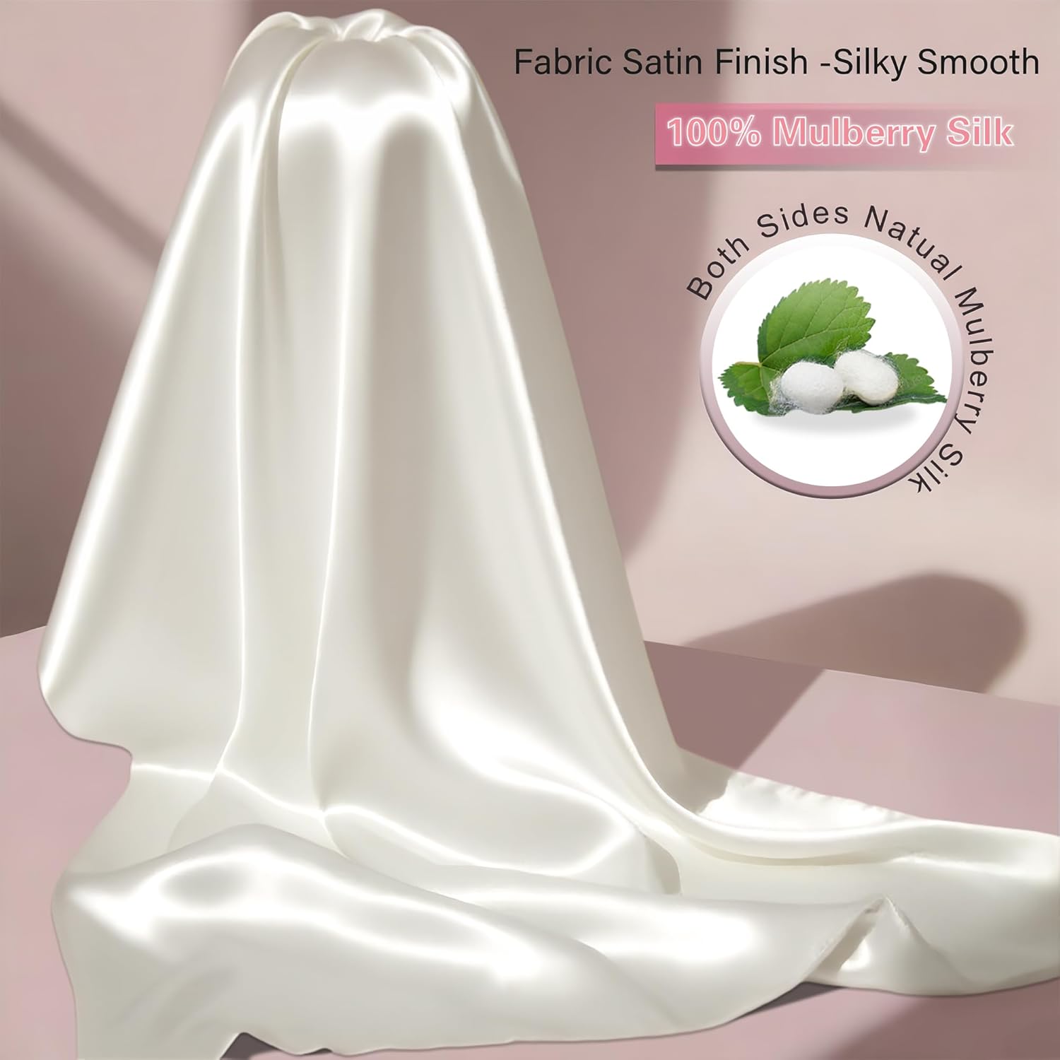 Mulberry Silk Pillow Cases with Zipper, Ultra Smooth Soft Breathable Cooling Pillow Cases for Hot Sleepers, Silk Satin Pillowcase for Hair and Skin, Gifts for Women (Ivory, Queen Size, 1 Pack)