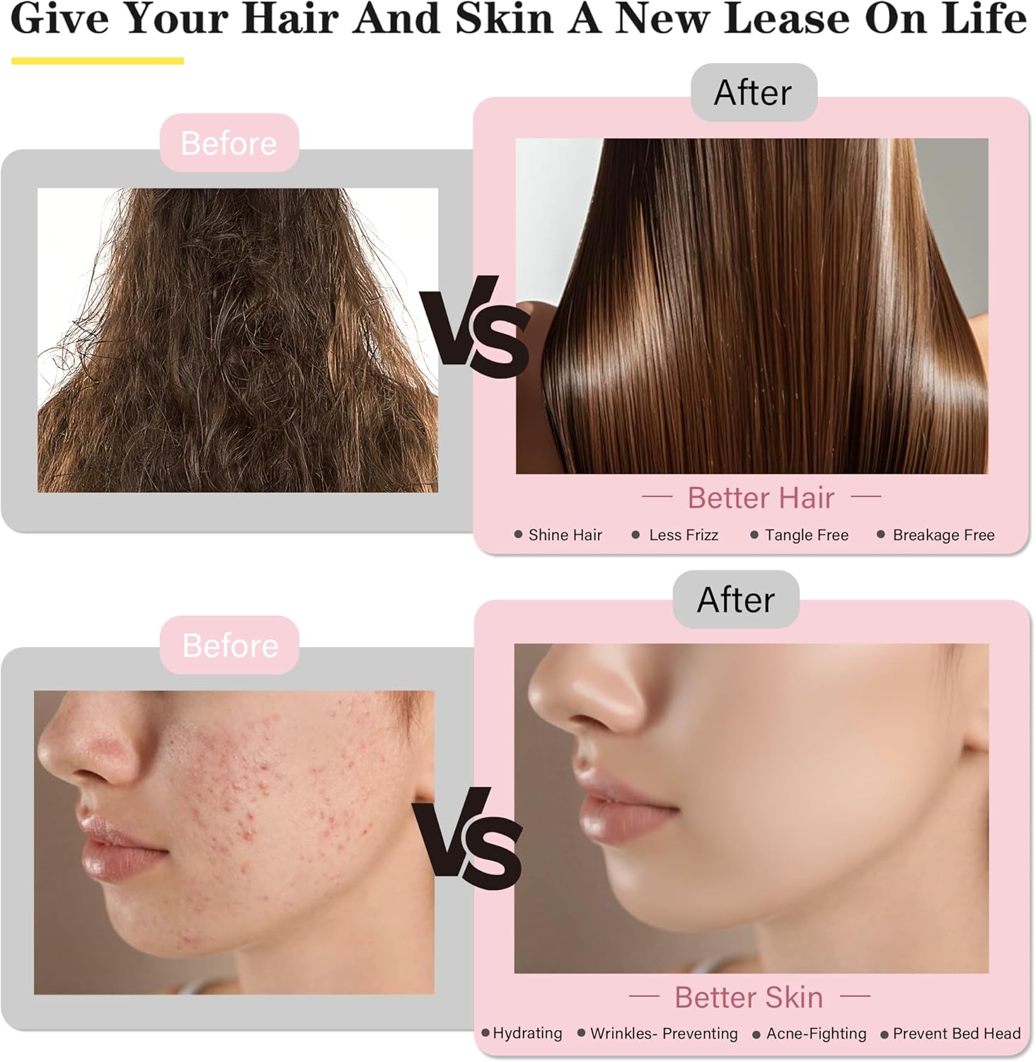 • 【Gentle on Skin & Hair】 Silk pillowcase for hair and skin, Hypoallergenic and breathable, reduces wrinkles, acne, and bedhead while locking in moisture. It is ideal for those with curly hair or who wants to improve their skin condition and sleep well