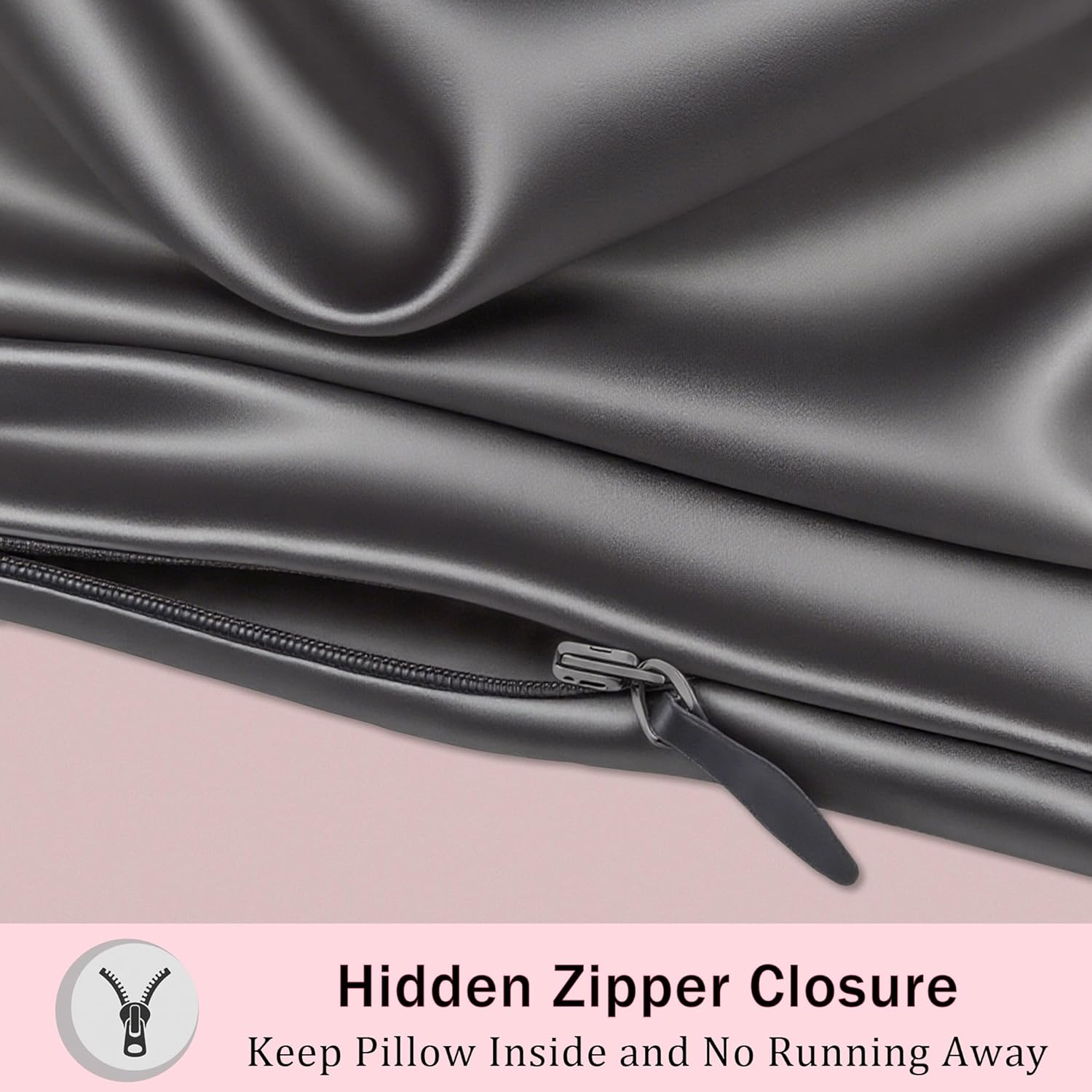 Mulberry Silk Pillow Cases with Zipper, Ultra Smooth Soft Breathable Cooling Pillow Cases for Hot Sleepers, Silk Satin Pillowcase for Hair and Skin, Gifts for Women (Dark Grey, King Size, 1 Pack)