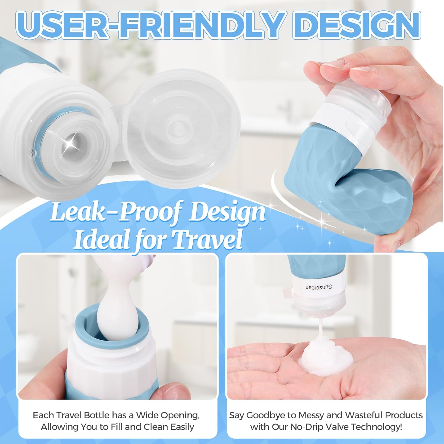 - 【TSA APPROVED】These 16-pack of toiletry travel bottles meet all TSA carry-on baggage standards, allowing you to pass through security smoothly. There is also a clear and sturdy zipper bag, which is perfect for quick airport inspections